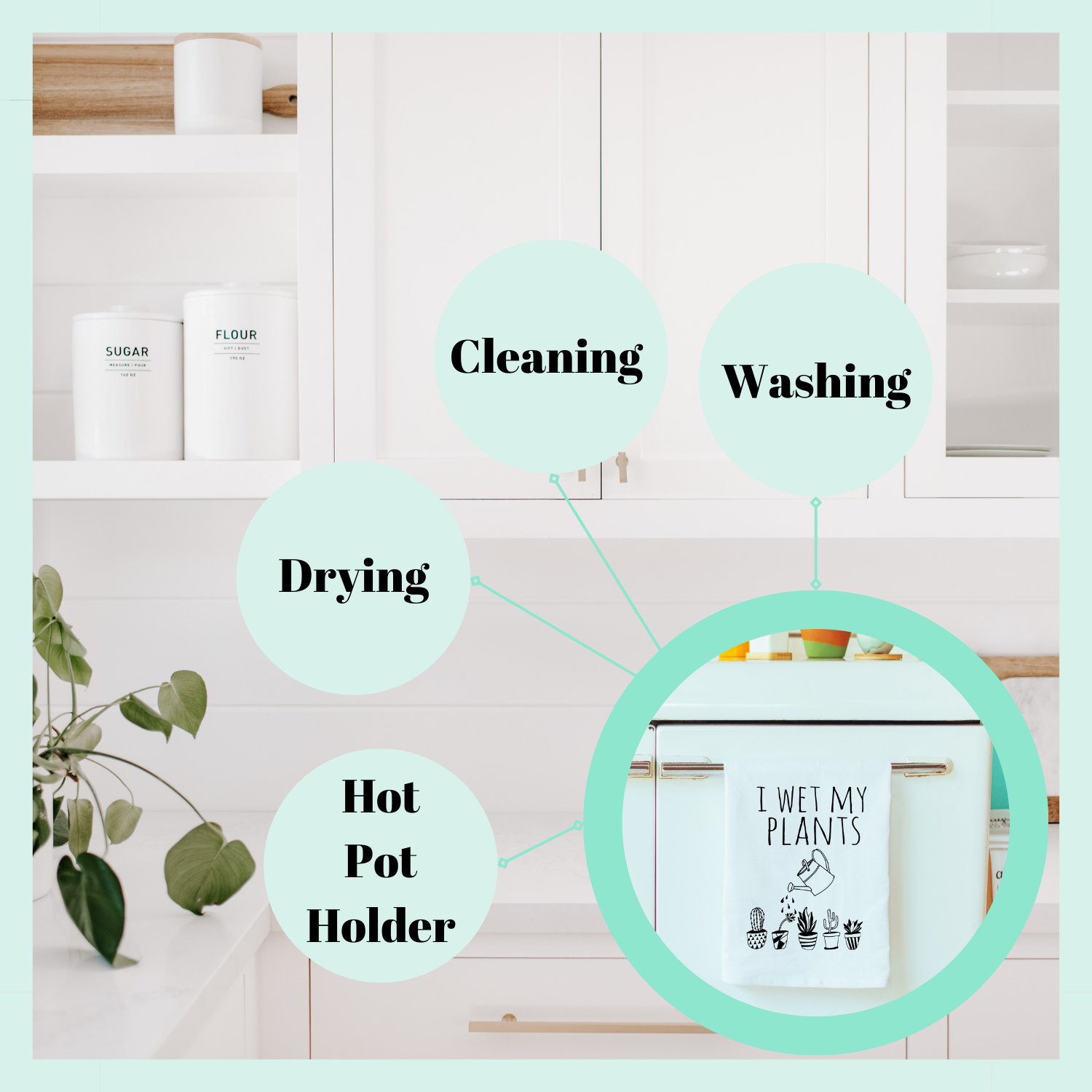 Brighten up your home with this cute and funny flour-sack dish towel! Laughing burns calories, so use these punny towels for giggle filled dish drying, as a charming hand towel for your bathroom, or as a cute gift to a friend!