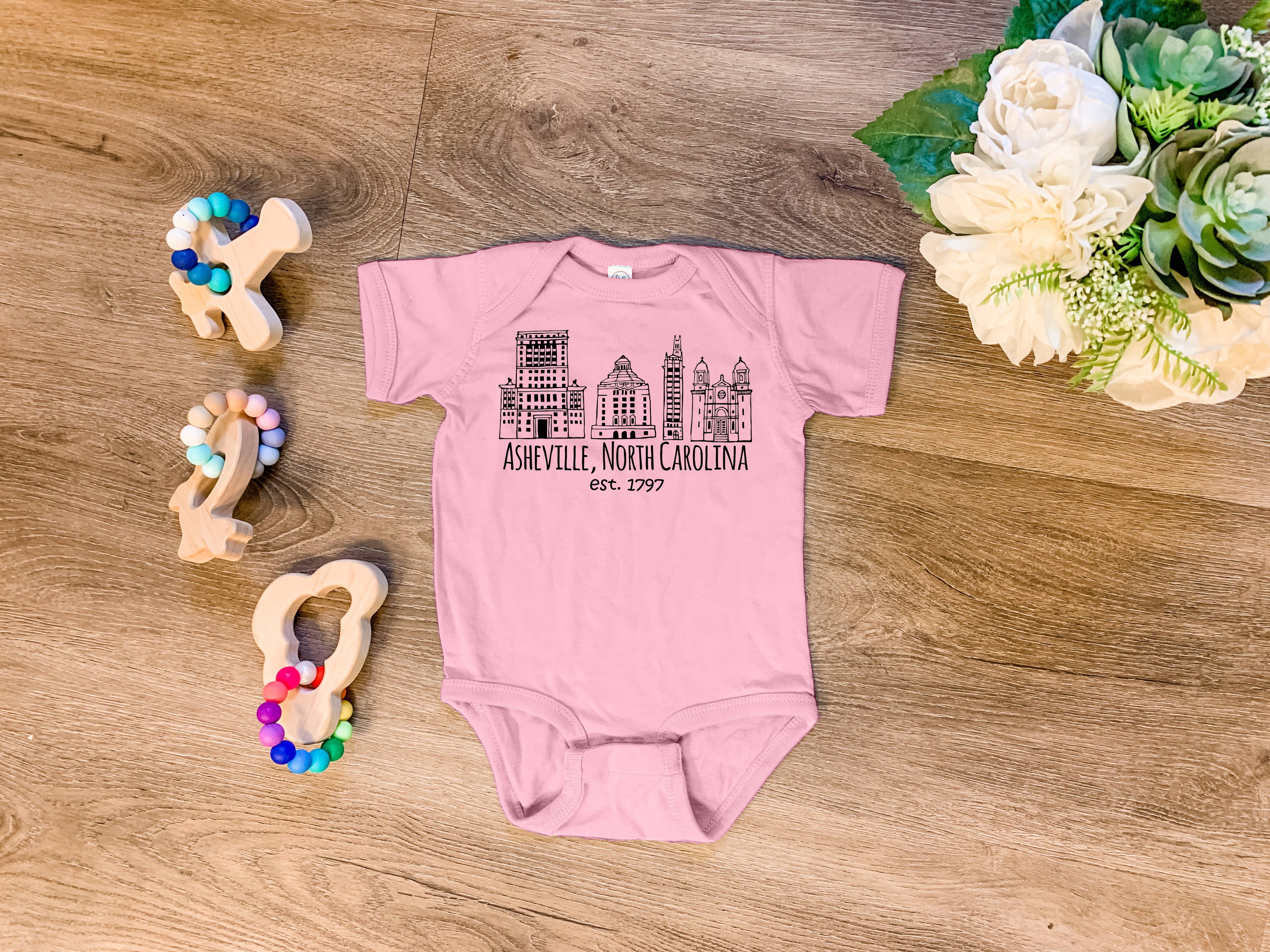 Asheville, NC Skyline - Baby Onesie - AVL, North Carolina