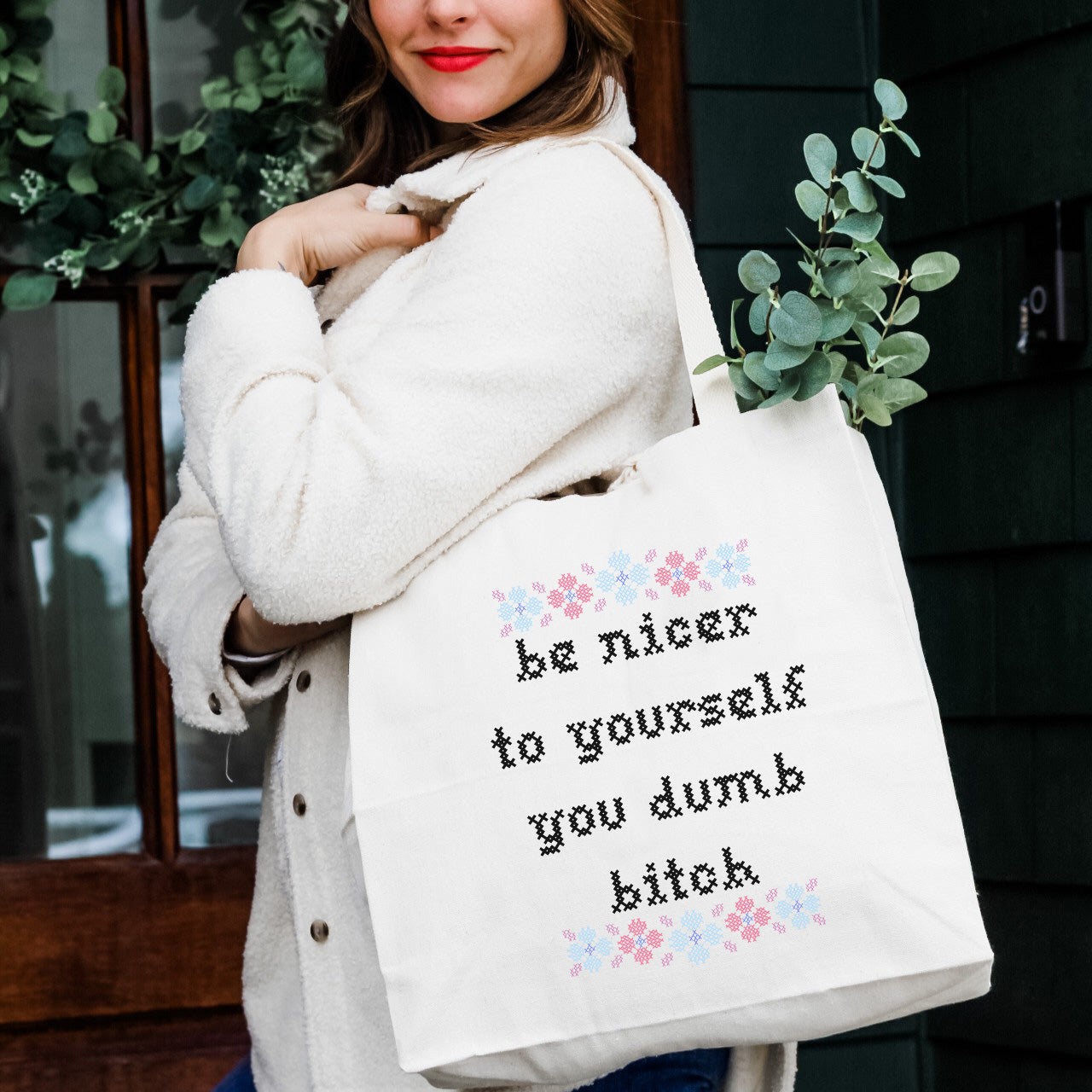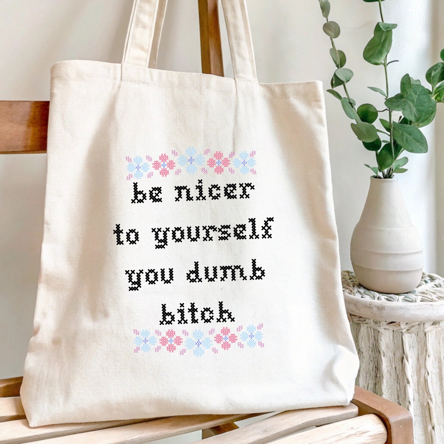 funny tote bag, sarcastic quote bag, cross stitch style design tote, sassy reusable bag, sarcastic everyday tote, boutique humor tote, funny eco-friendly bag, motivational humor tote, bold quote tote bag, conversation starter bag, sarcastic self love accessory, trendy graphic tote, quirky gift idea, sarcastic school tote, bold design shopping bag, funny work bag, affordable novelty tote, edgy reusable shopper, sarcastic holiday gift, modern humor bag for women