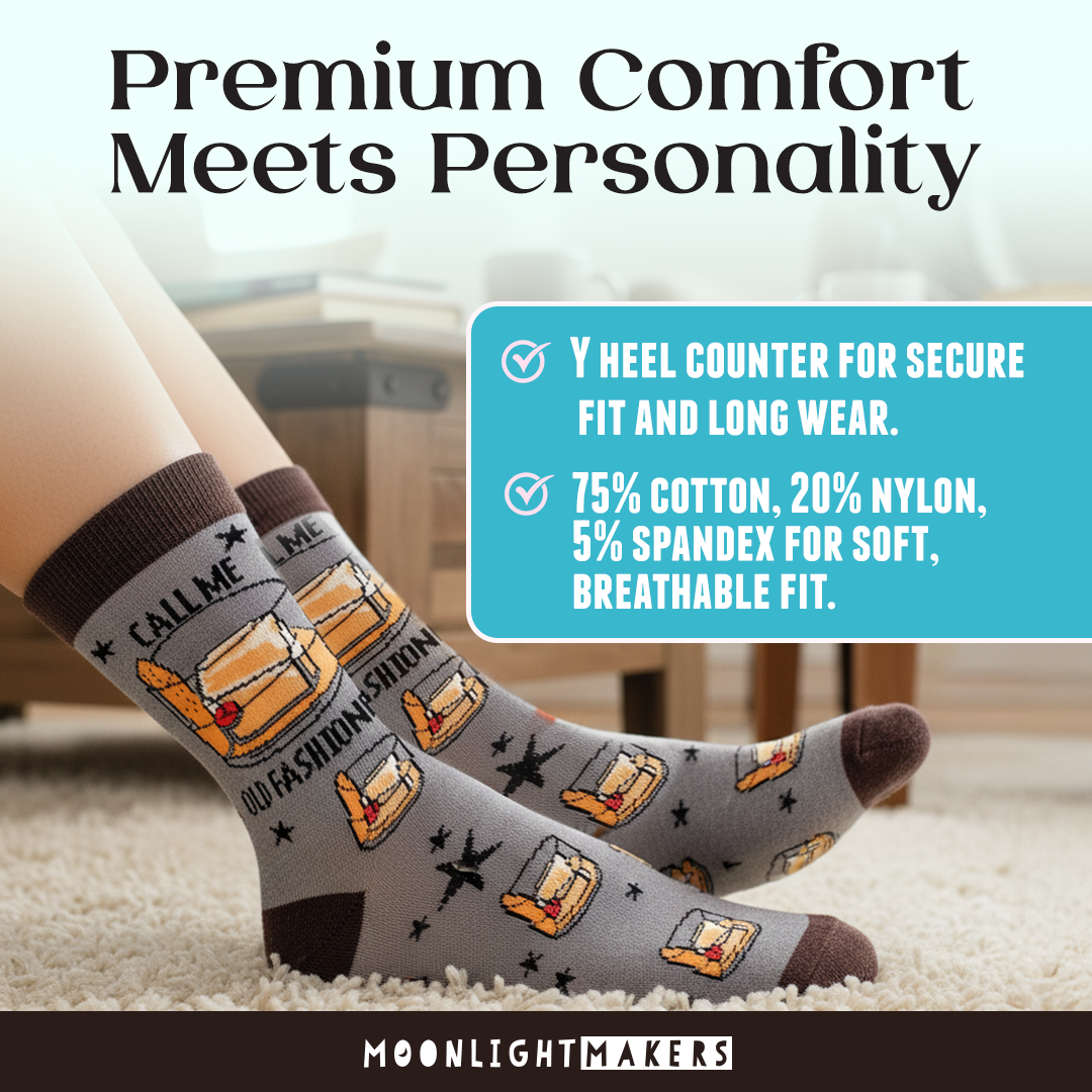 Perfect pairs, socks, sockstyle, sock life, sock lover, comfy, soft, warm, happy socks, gift for him, gift for her, stocking stuffer, fun, lighthearted, merch, accessories, novelty socks, crew socks, knit socks, funny socks, father's day, mother's day, funny unisex socks, old fashioned, whiskey lover, whiskey pun, dad humor, bourbon, dad joke