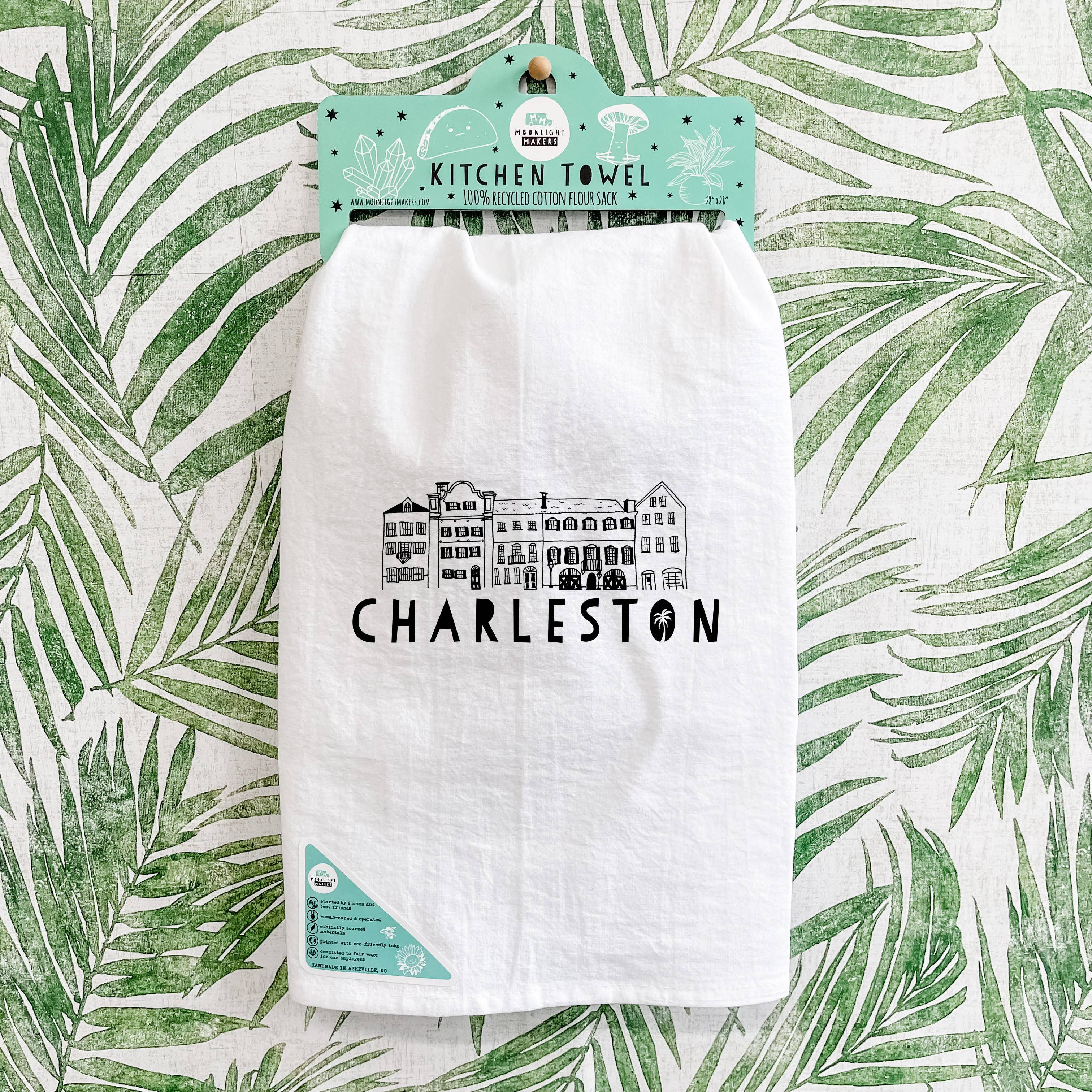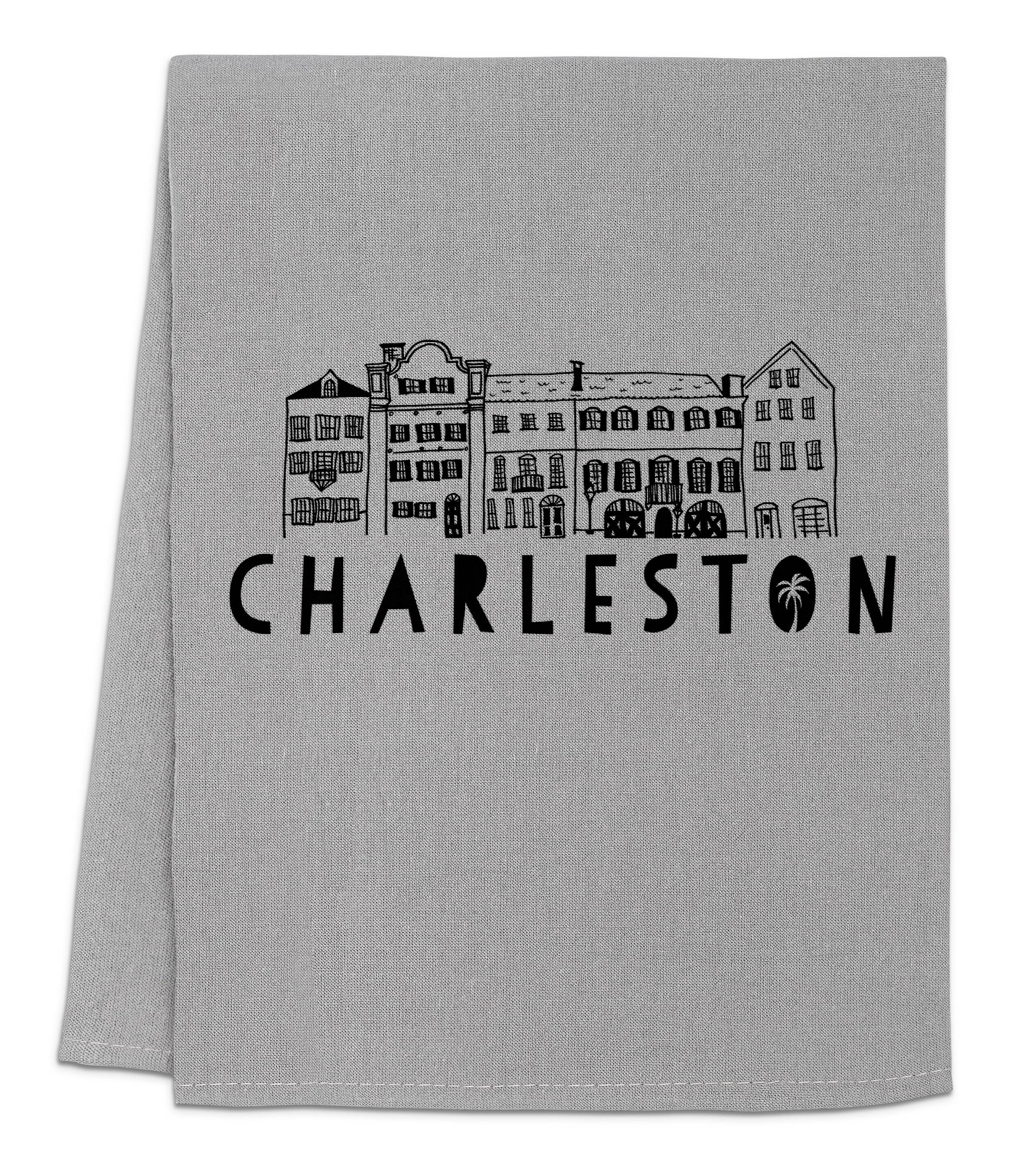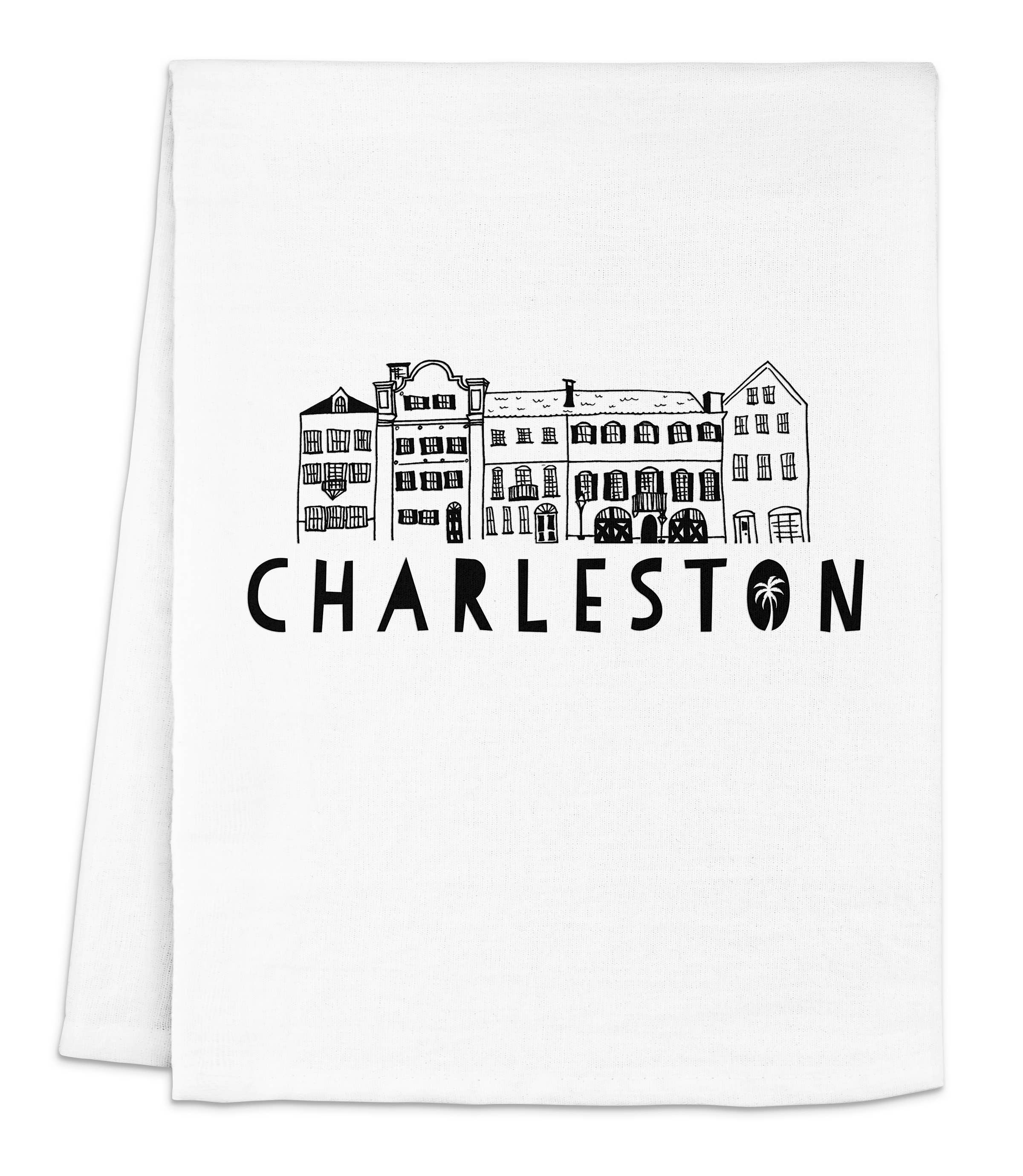 Charleston, SC Rainbow Row - Dish Towels - White or Gray