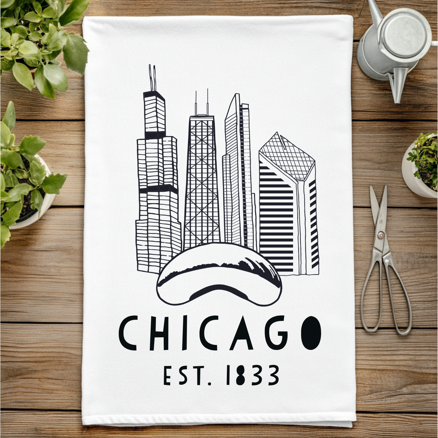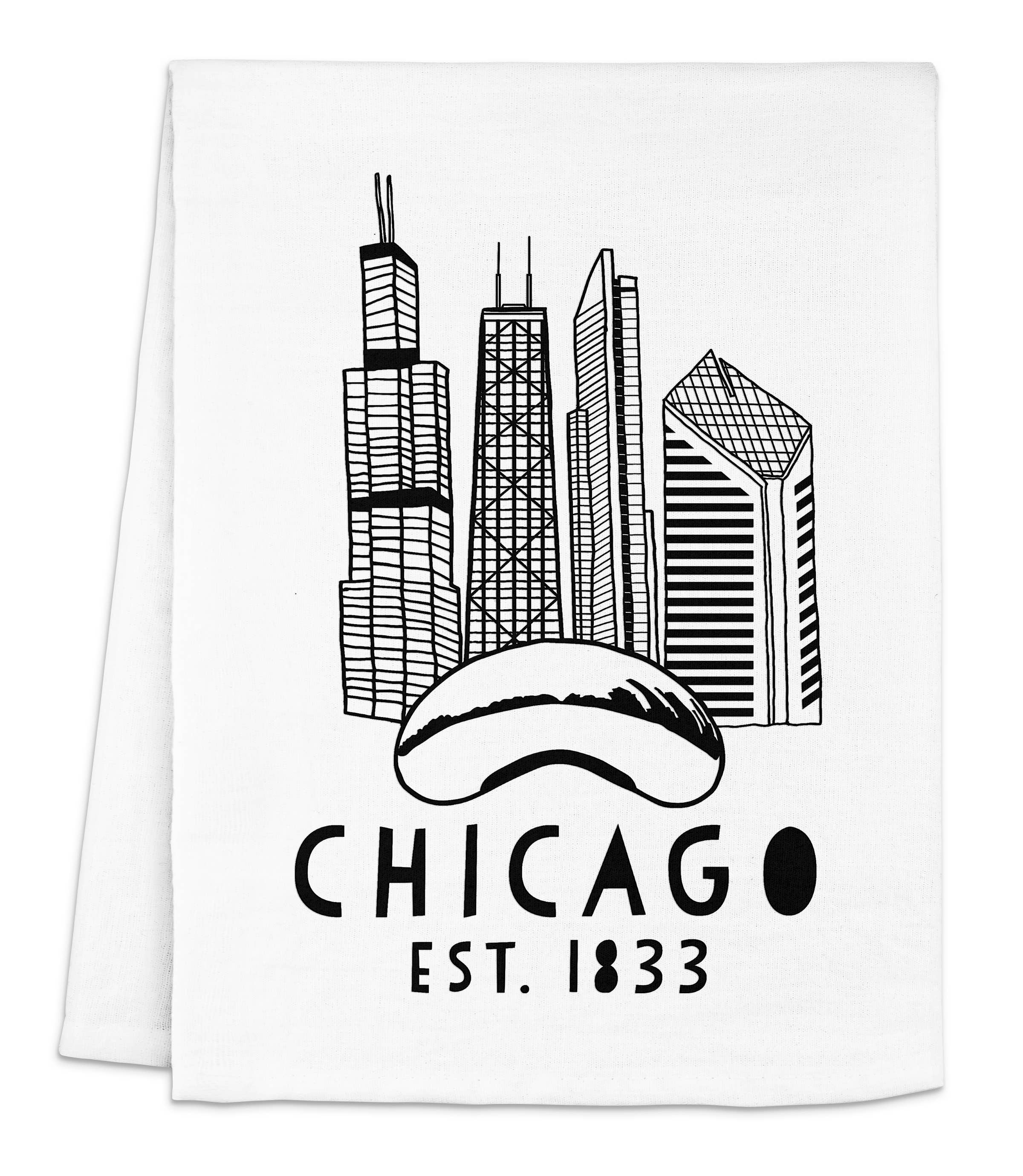 Chicago, IL Skyline - Dish Towels - White or Gray