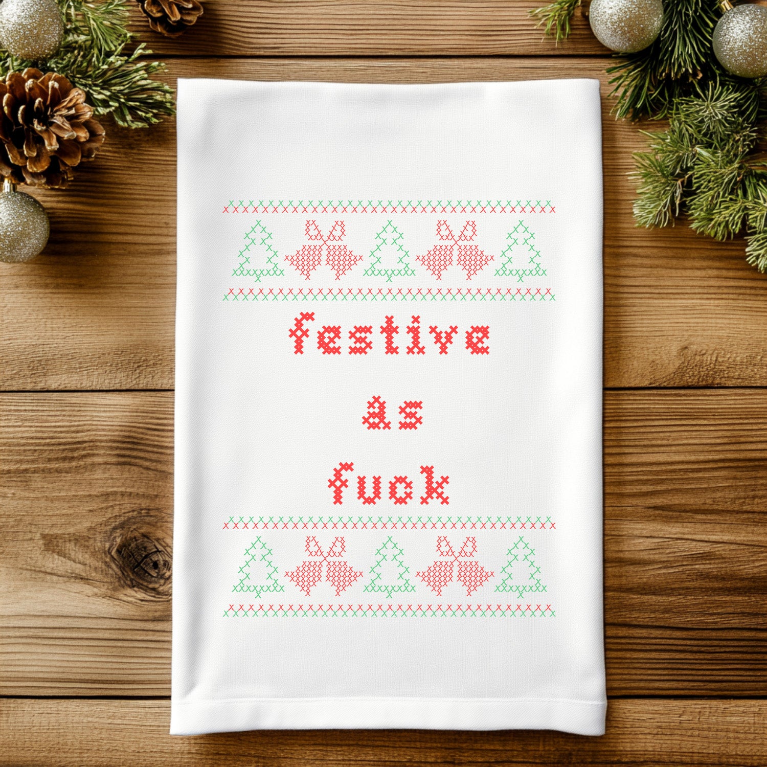 lighthearted, humor, joke, fun, laughter, idea, bar, dishes, gifts, him, her, host, hosting, hostess, handtowel, humorous, snarky dish towel, southern decor, kitchen decor, adult humor, tea towel, cross stitch, christmas, xmas decor, festive af, holiday dish towel, snarky christmas decor, funny christmas kitchen towel, festive as fuck holiday tea towel, sarcastic christmas humor dish towel, cross stitch bells and trees towel, quirky holiday hostess gift, boutique christmas linens, white cotton holiday towel, sarcastic christmas gag gift, farmhouse christmas kitchen decor, stocking stuffer towel gift, edgy holiday humor dish towel, festive novelty christmas accessory, bold sarcastic holiday towel, funny christmas kitchen decor, quirky christmas hostess gift idea, unique holiday gag towel, trendy boutique holiday linens, sarcastic christmas kitchen accessory