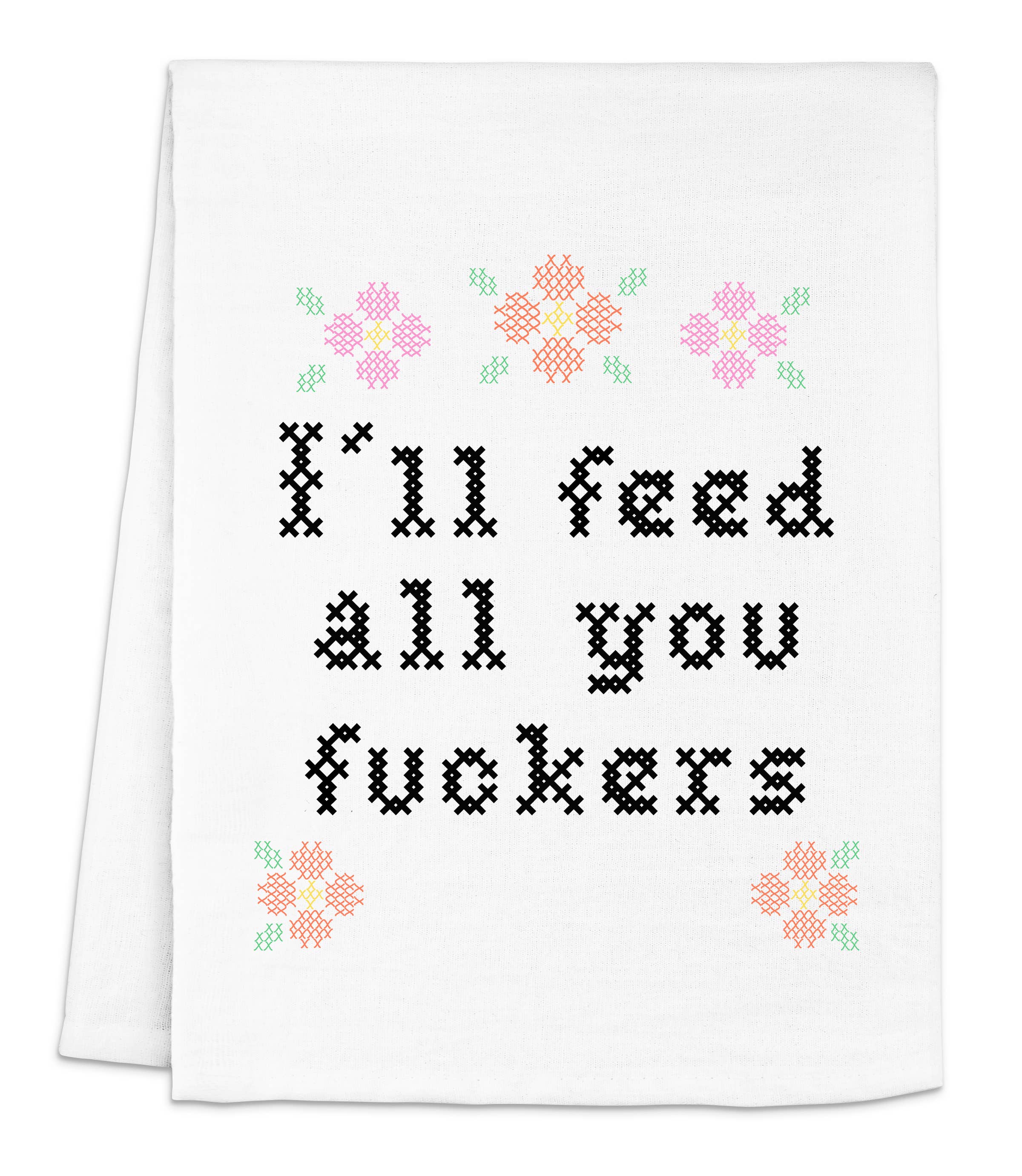 Colorful Cross Stitch Towels - I'll Feed All You Fuckers