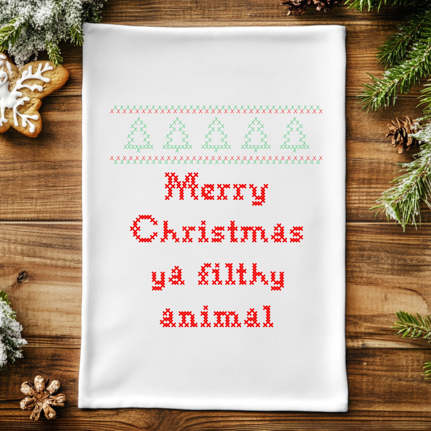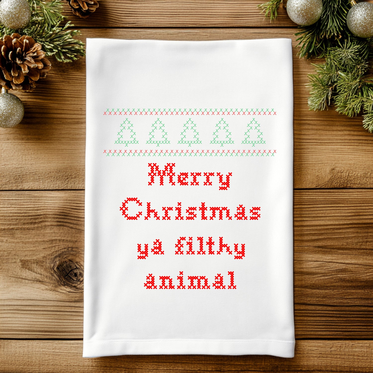 Colorful Cross Stitch Towels - Merry Christmas Ya Filthy Animal