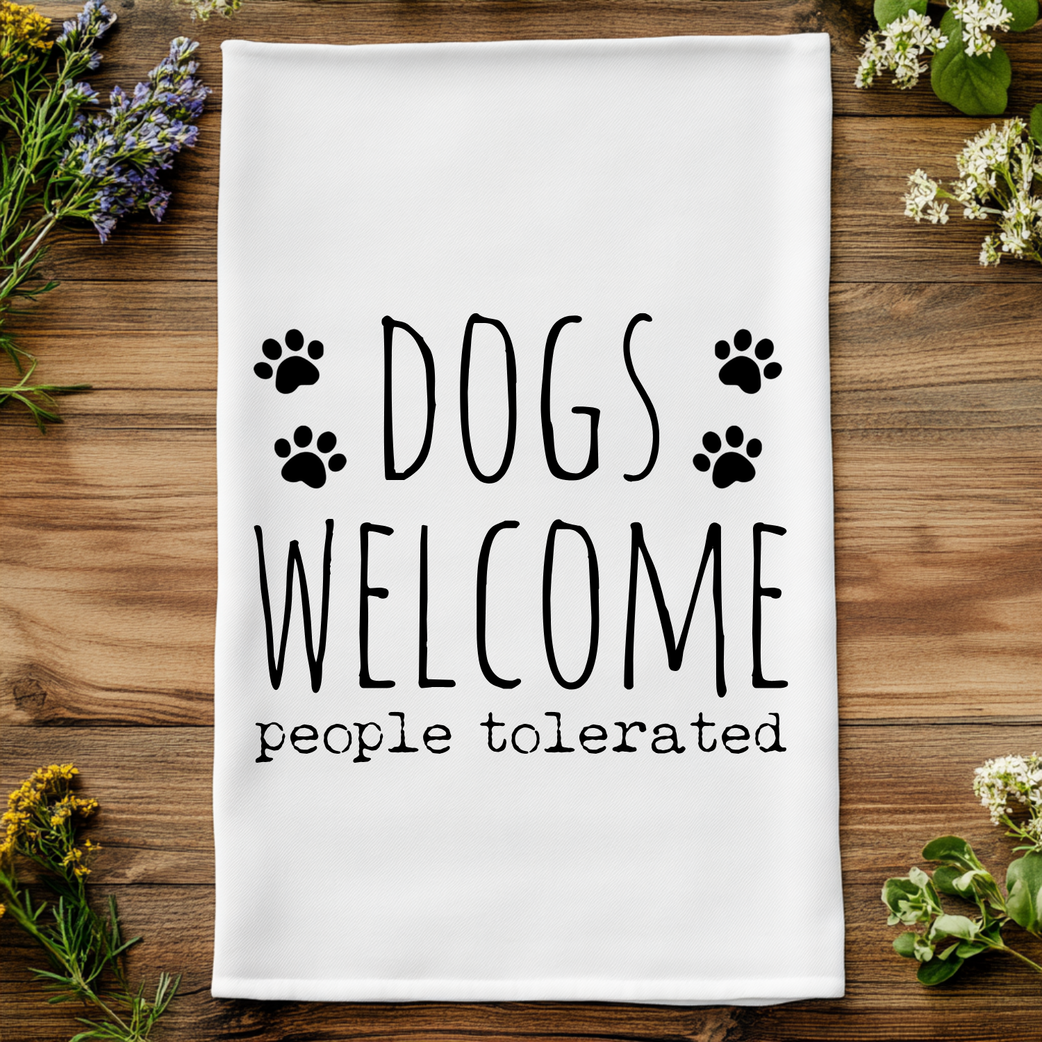 Dogs Welcome People Tolerated - Dish Towels - White or Gray