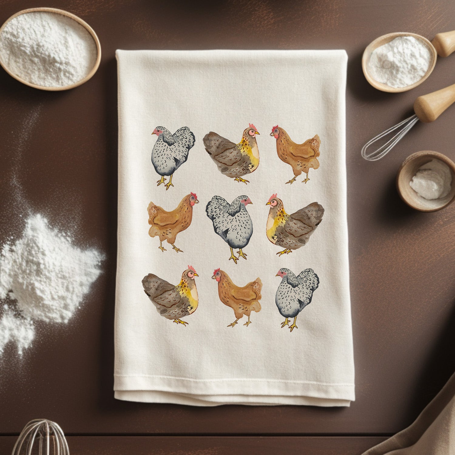 watercolor chicken dish towel, farmhouse kitchen towel, rustic country tea towel, barnyard animal dish towel, chicken lover kitchen decor, country kitchen baking towel, eco-friendly farmhouse dish towel, rustic home kitchen towel, backyard chicken gift, gift shop tea towel, cute kitchen towels, southern kitchen decor, farmhouse tea towels, chicken accessories, chicken gift