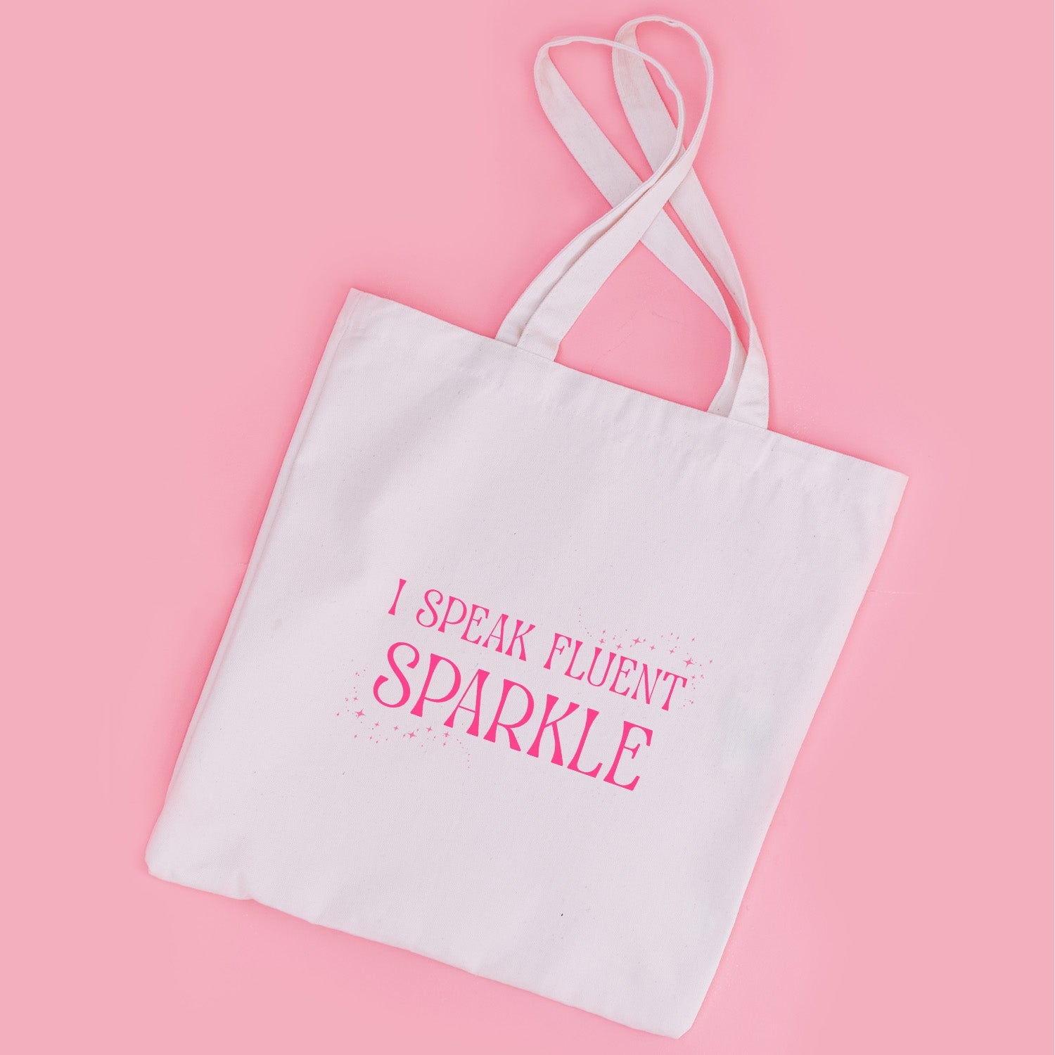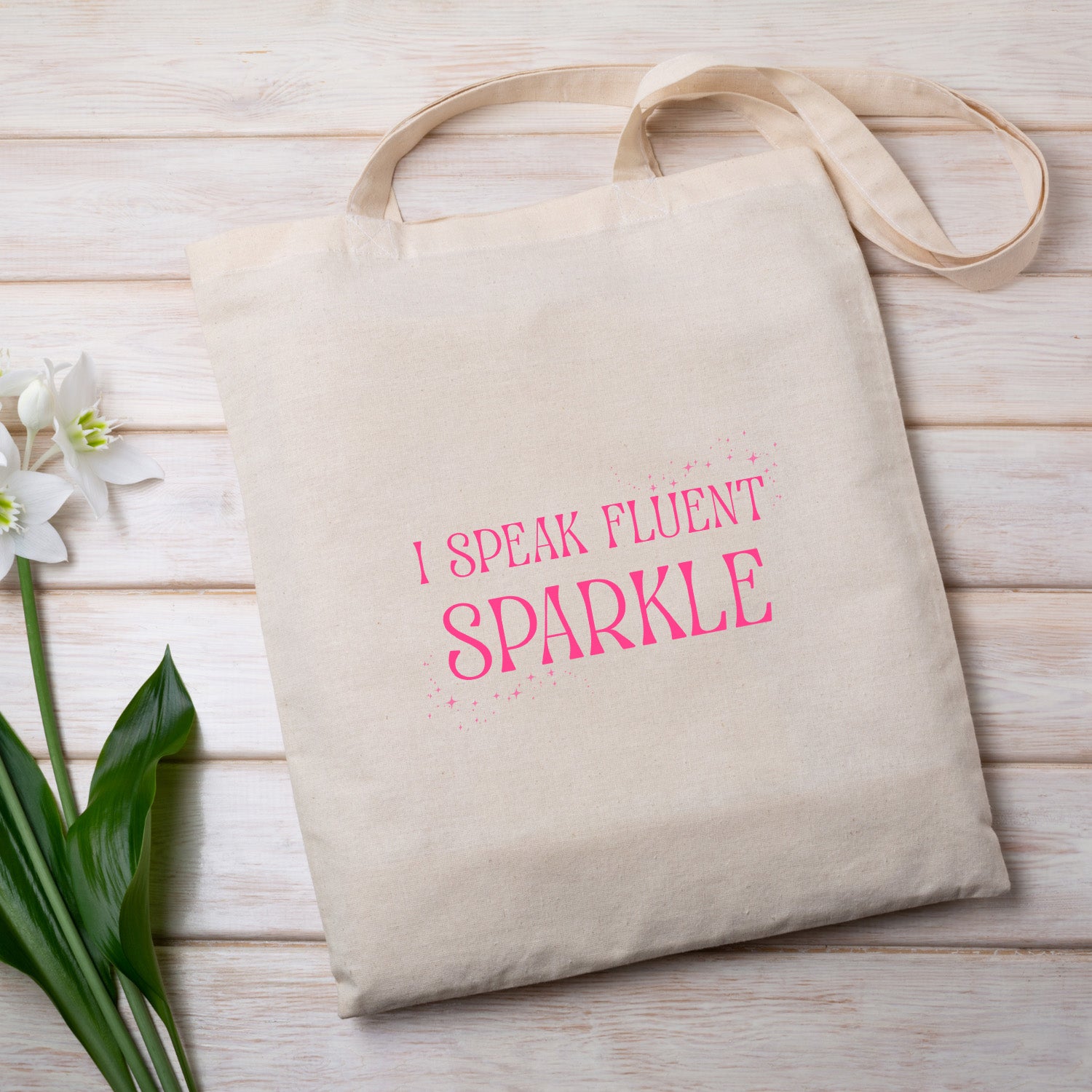 I Speak Fluent Sparkle tote bag, wicked accessories, wicked merch, wicked inspired tote, sparkle quote bag, green and pink aesthetic design, boutique tote bag, pop culture inspired accessory, reusable canvas bag, stylish carryall, gift for her, gift for him, birthday gift, gift for bestie, stocking stuffer, trendy boutique bag, witchy aesthetic tote, eco-friendly market bag, sparkle lover’s tote, retail fashion essential, small shop bestseller, wicked themed accessory, magical tote for boutiques