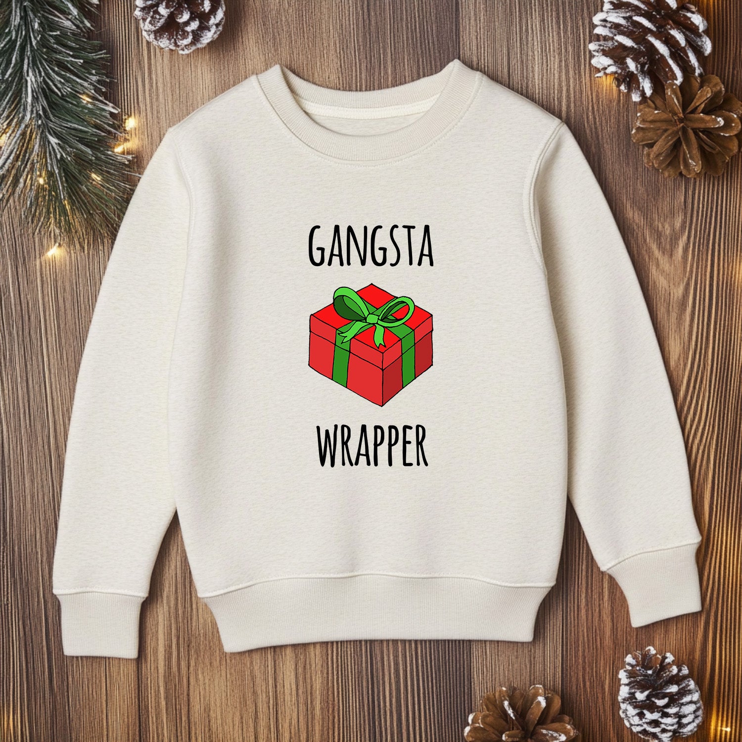 Gangsta Wrapper - Christmas Kid's Sweatshirt - Oatmeal