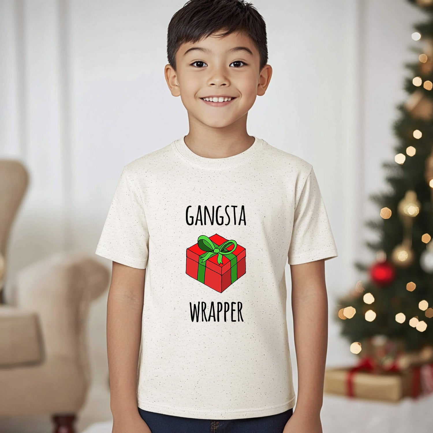 Gangsta Wrapper - Christmas Kid's Tee - Oatmeal