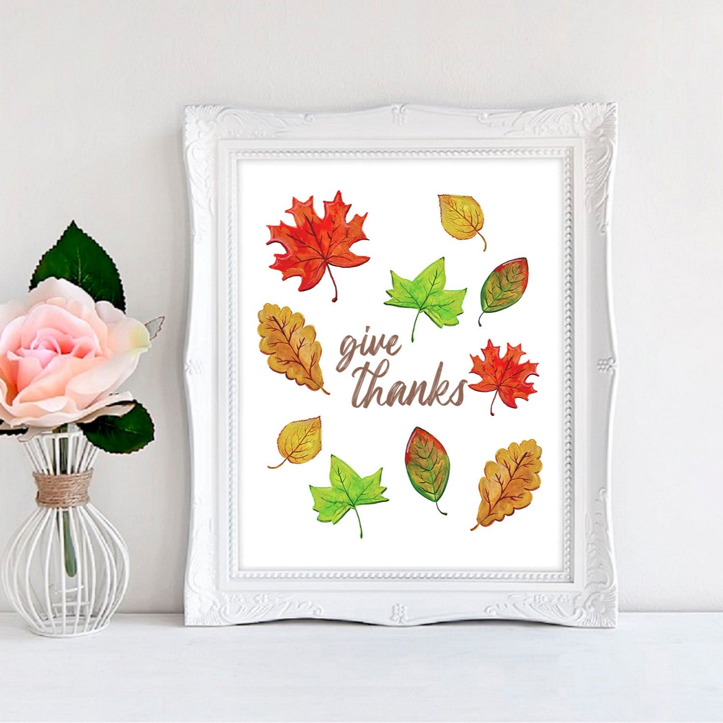 lighthearted, humor, joke, art, fun, laughter, ideas, office, mothers, fathers, birth, decor, decoration, festive, wallprint, bedroom, hallway, give thanks wall art, thanksgiving decor print, watercolor leaf art, fall wall decor, gratitude themed print, harvest season art, thanksgiving home display, cozy autumn wall print, seasonal shop decor, fall boutique art, give thanks home sign, framed thanksgiving print