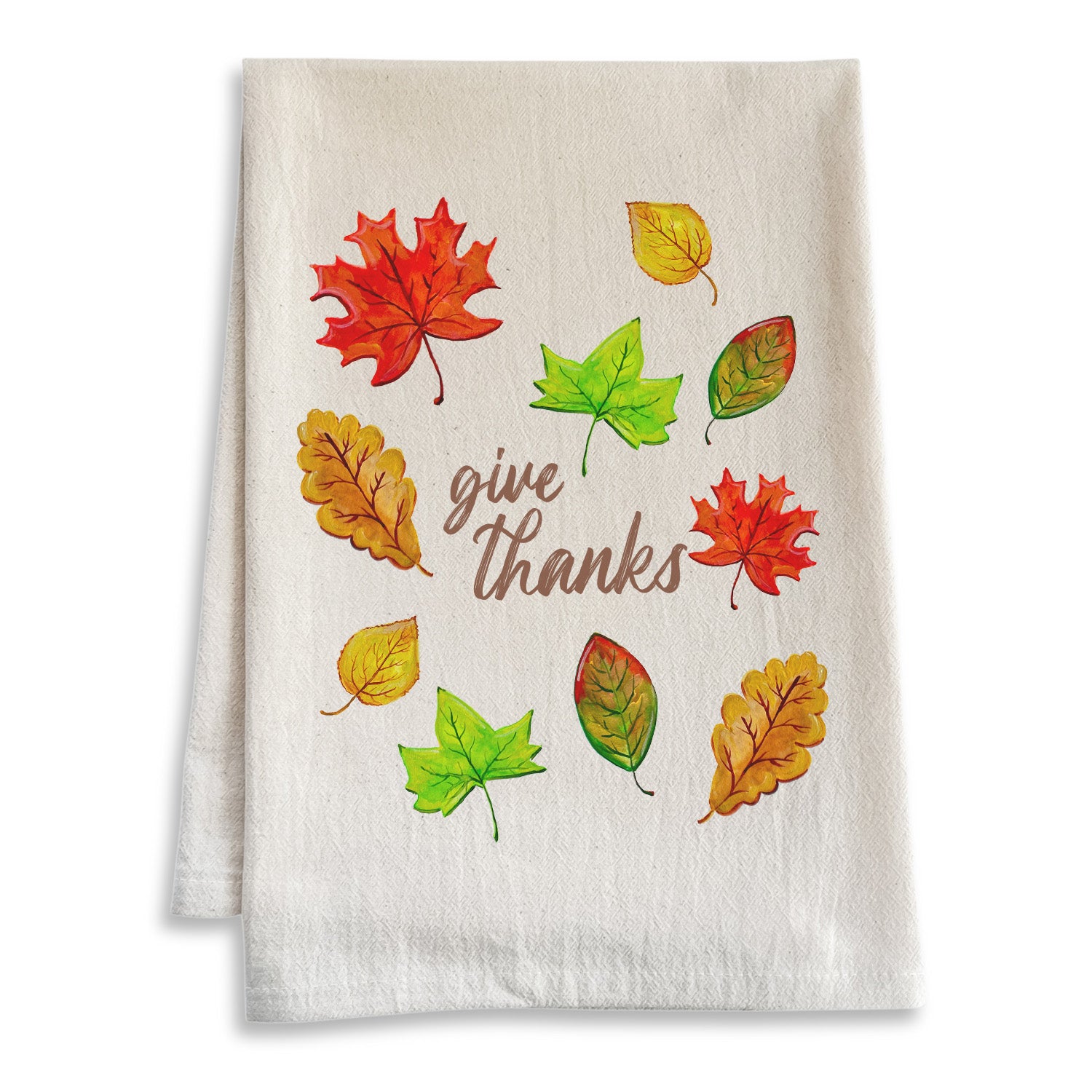 lighthearted, bar, dishes, gifts, him, her, ideas, host, hosting, hostess, handtowel, fall decor, usa, décor, boho, give thanks kitchen towel, thanksgiving tea towel, fall watercolor leaf dish towel, gratitude themed home decor, autumn kitchen textile, cozy fall display item, hostess gift towel, cotton thanksgiving towel, harvest season decor, farmhouse fall tea towel