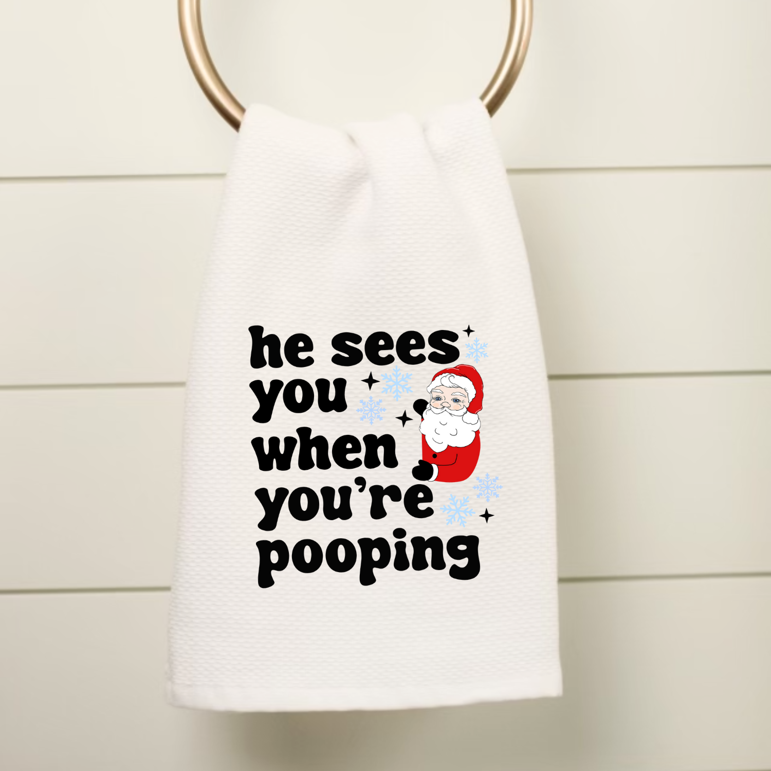 He Sees You When You're Pooping - Colorful Hand Towel (Waffle)