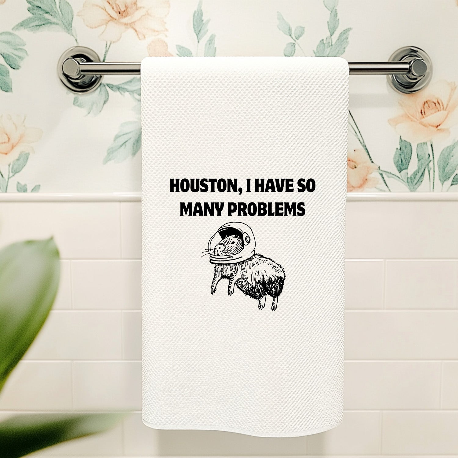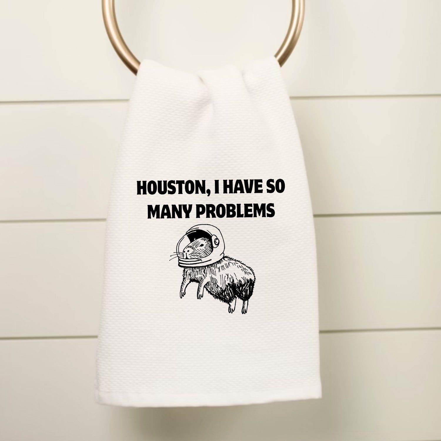funny bathroom towel, funny gift, funny decor, hostess gift, houston i have so many problems towel, funny capybara bathroom towel, space animal towel, astronaut animal hand towel, quirky humor towel, novelty hand towel, cute funny towel, trending bathroom towel, capybara hand towel, gift for her, gift for him, birthday gift, gift for bestie, stocking stuffer, cotton waffle towel, farmhouse humor towel, animal lover towel, space lover towel, southern humor towel, boutique towel, shirts with sayings, shirts with puns, southern apparel, funny southern apparel, southern humor