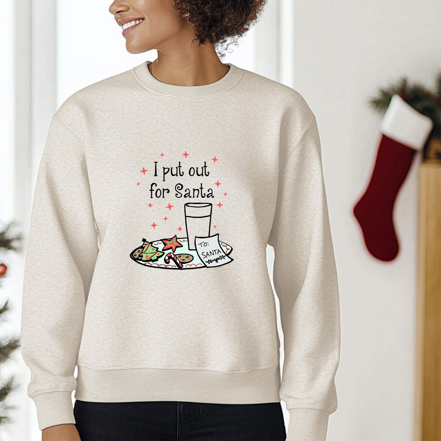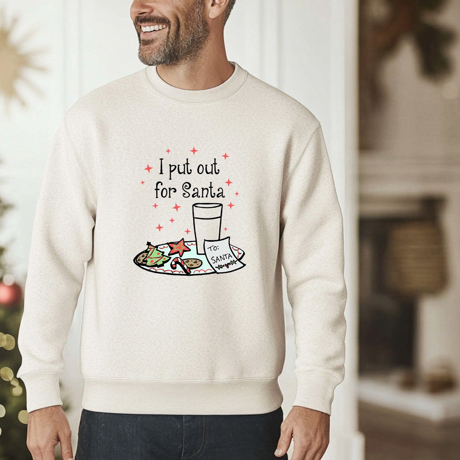 Keywords: funny christmas sweatshirt, i put out for santa sweater, holiday humor unisex sweatshirt, oatmeal cozy santa cookies and milk pullover, boutique christmas apparel, sarcastic ugly sweater alternative, funny holiday lounge wear, festive holiday humor sweatshirt, stocking stuffer gag gift, unique christmas gag gift sweatshirt, santa humor graphic pullover, bold christmas statement sweatshirt, quirky boutique holiday clothing, funny christmas party sweatshirt, santa claus novelty sweater, edgy holiday humor fashion, trendy boutique winter holiday sweatshirt