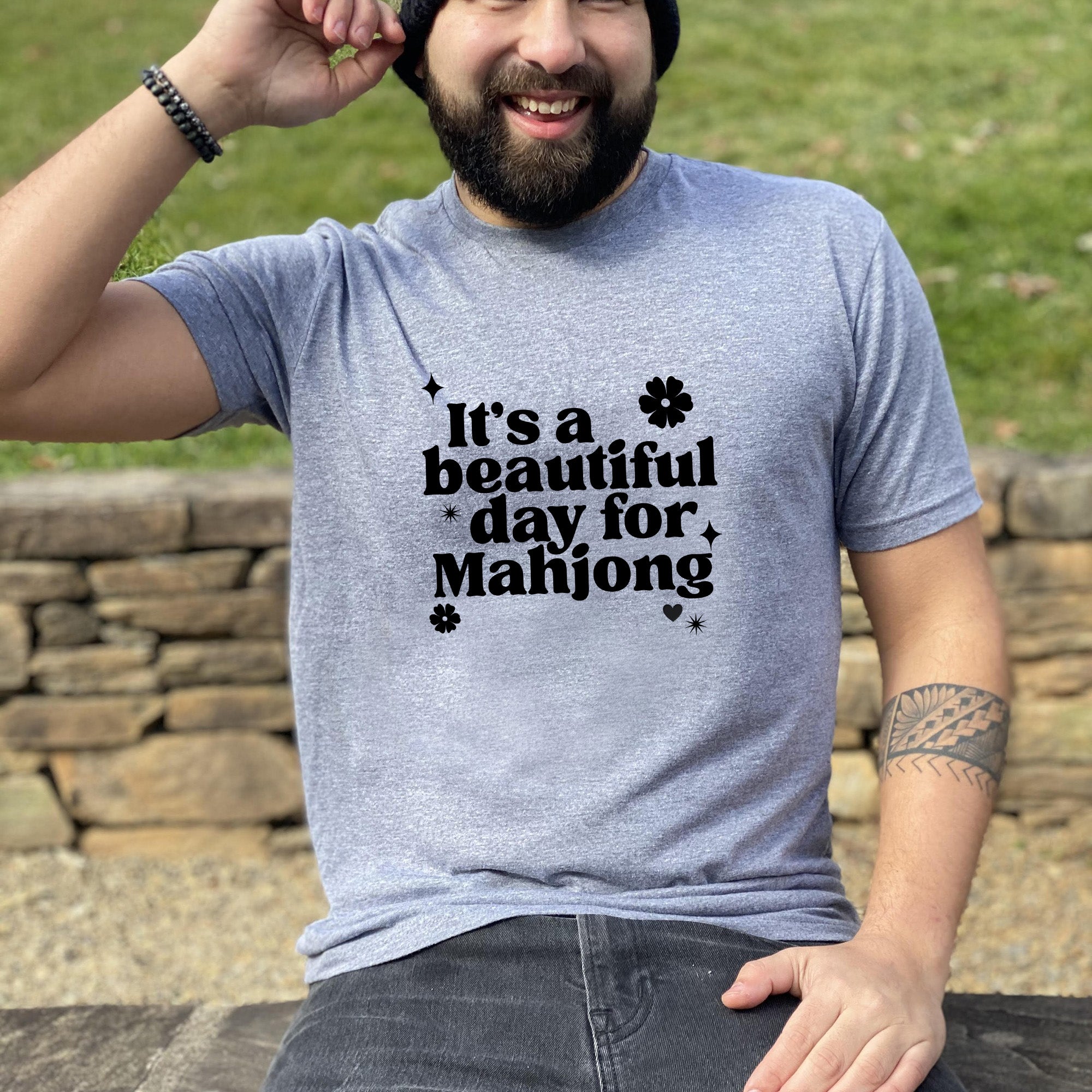 adult, handmade, man, mens, guy, dude, apparel, loose, relax, relaxed, comfy, casual, unisex, lighthearted, humor, humorous, joke, fun, happy, tops, gift, gifts, tshirt, men, him, soft, screenprinted, screen, printed, fashion, mahjong men’s t-shirt, it’s a beautiful day for mahjong shirt, fun game night tee, mahjong lover graphic shirt, casual game apparel, gift for mahjong player, game table outfit, gift shop game night t-shirt, family game night tee, mahjong obsessed, mahjong gift, mahjong lover, mahjong accessories, gift for her, gift for him, mother's day, father's day, board game accessories, board game lover