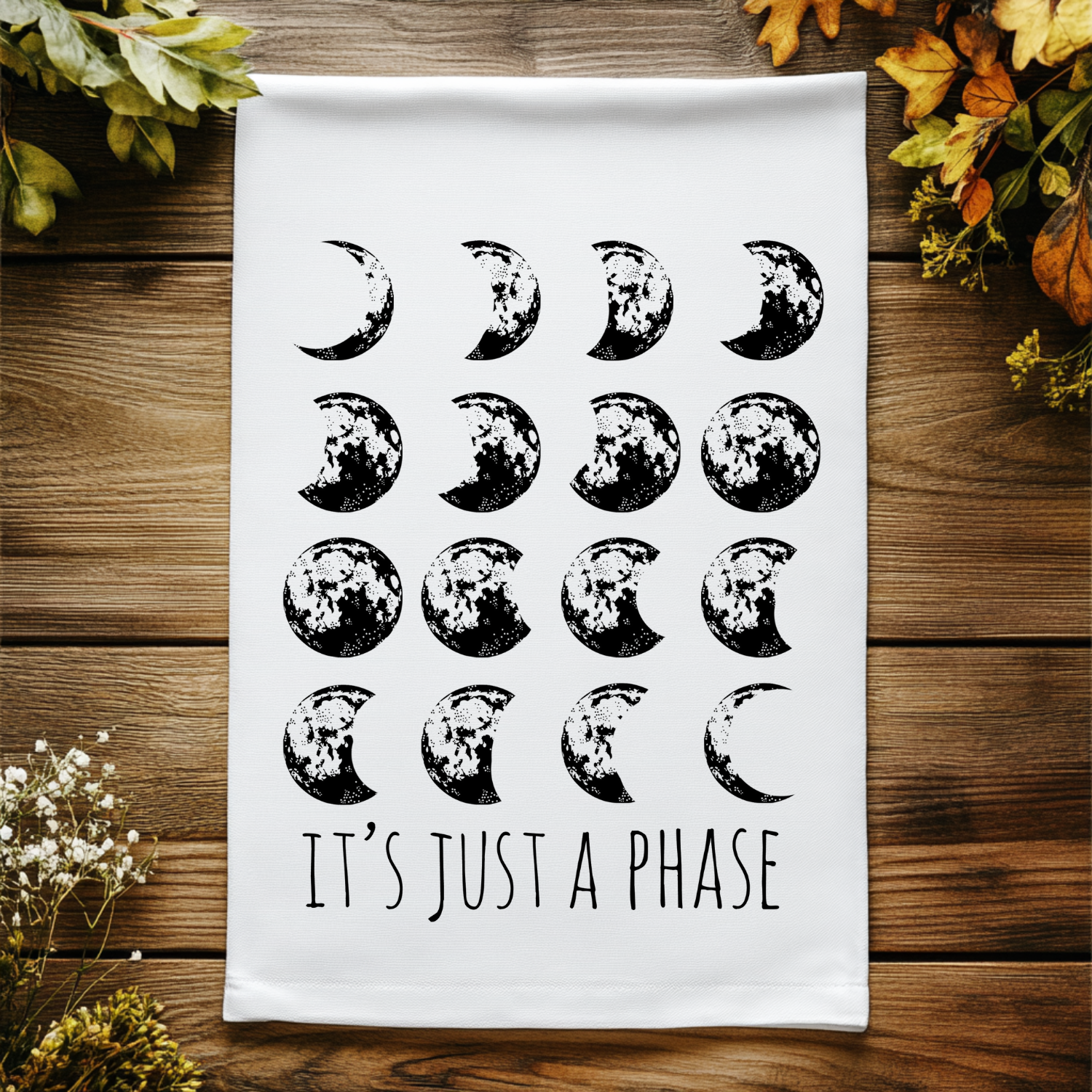 It's Just a Phase - Dish Towels - White or Gray - Moon