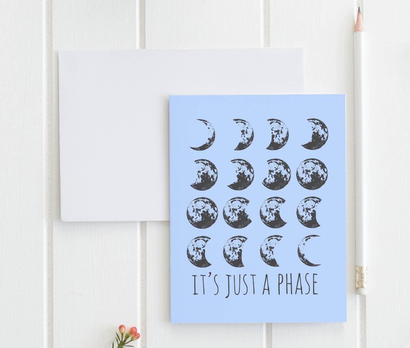 Keywords: greeting, funny, illustrated card, color, fun, lighthearted, for him, for her, hand drawn cards, greeting cards, recycled greeting cards, cheap cards, blank cards, blank greeting cards, recycled cards, cute greeting cards, everyday greeting card, sweet thinking of you card, sweet sympathy card, encouragement card, encouraging card for friend, moon phase greeting card, friendship card, card with moon phases, sweet get well card, moon stationery, astrology, zodiac, breakup card, sympathy card, divorce card,