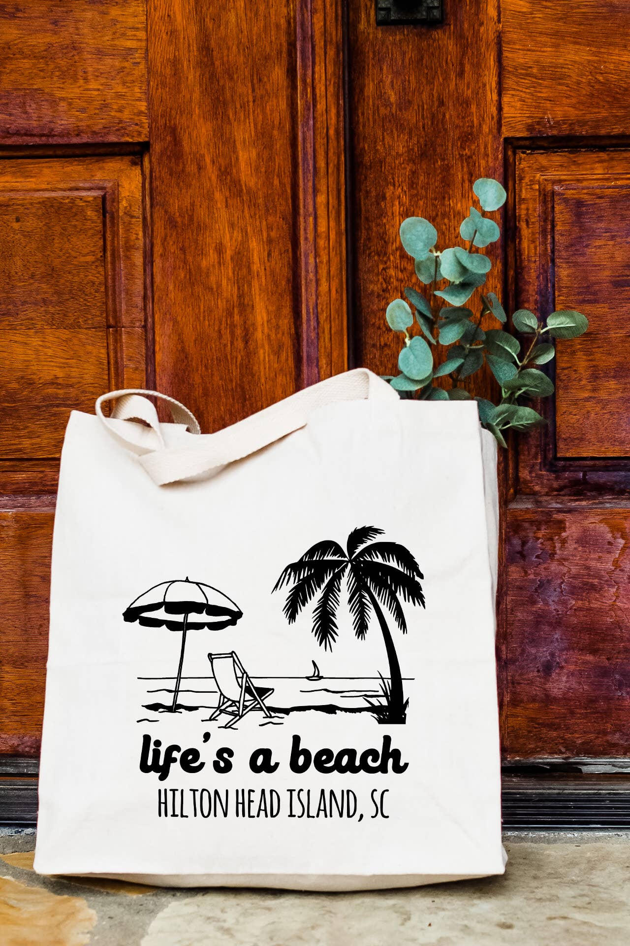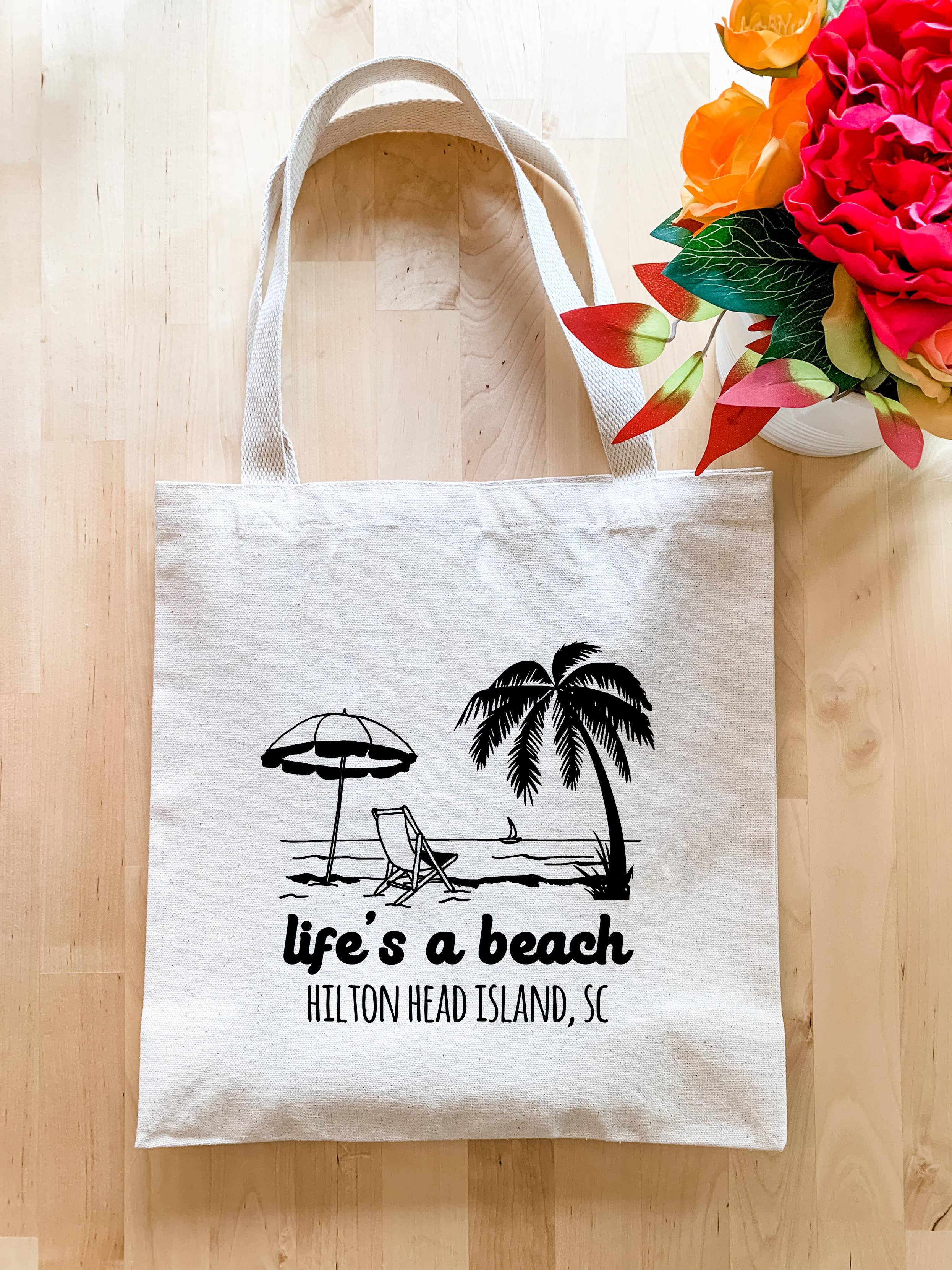 Life's a Beach + Your Town - Canvas Tote Bags - Personalized