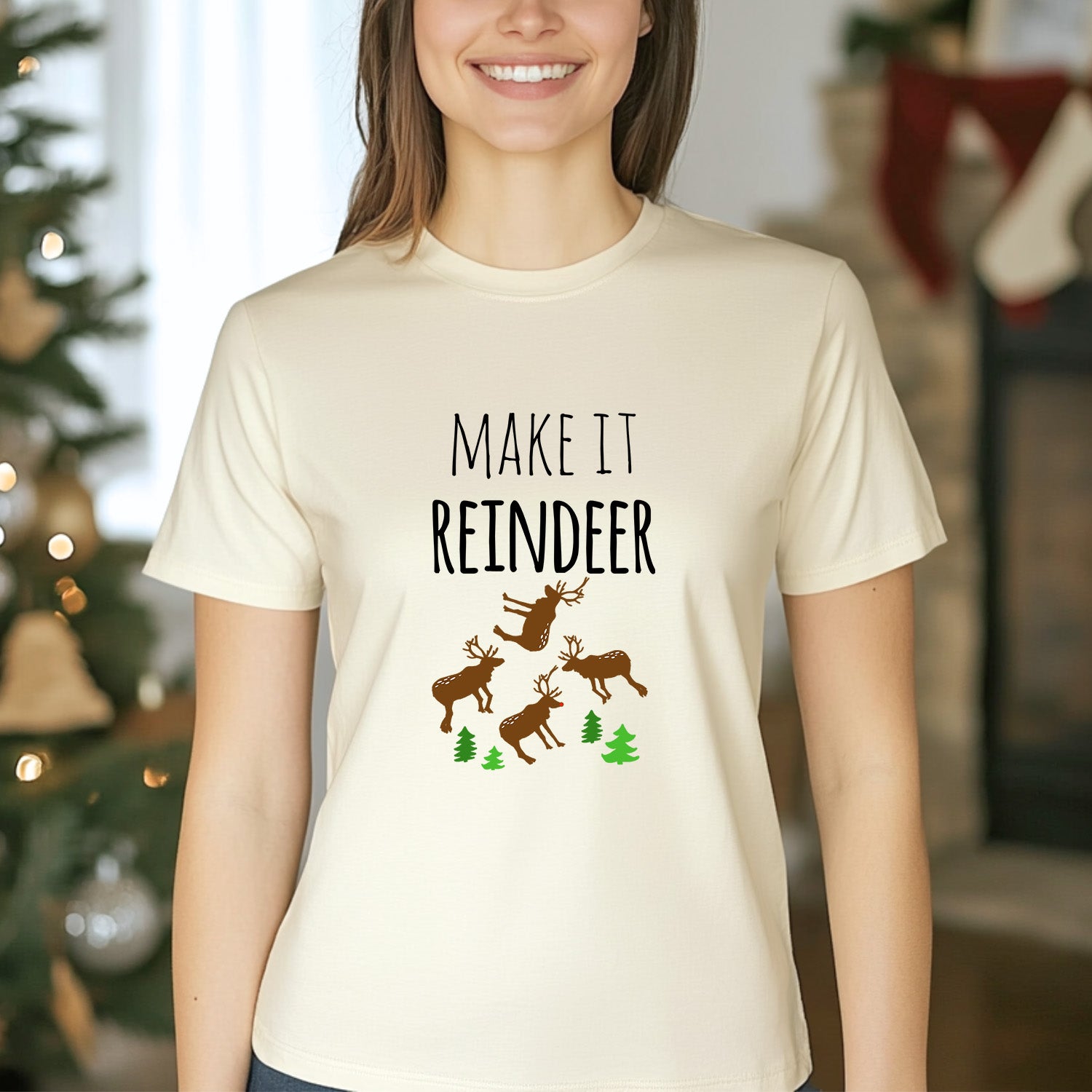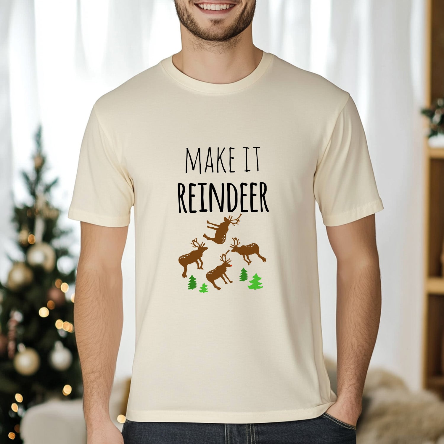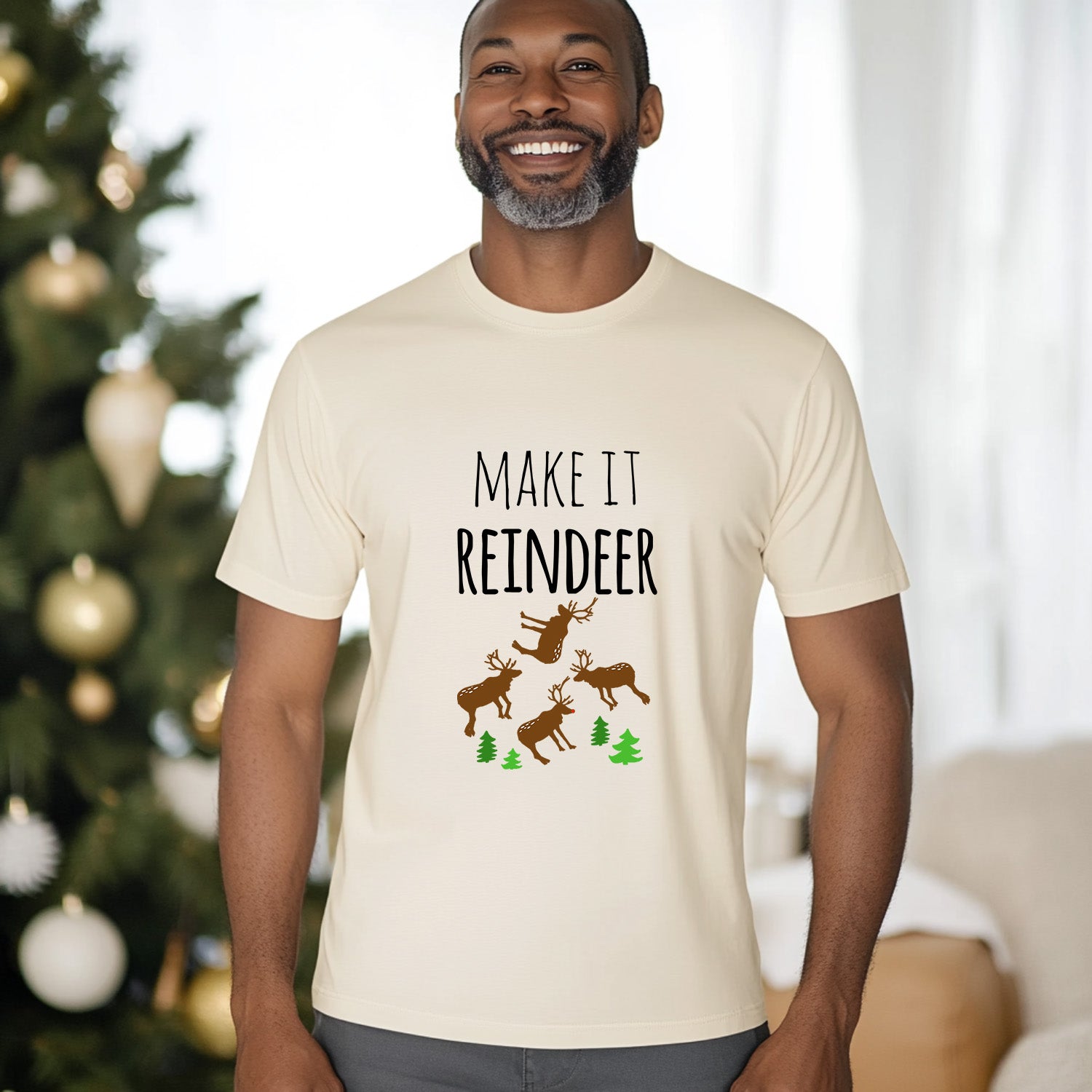 Make It Reindeer - Christmas Men's/Unisex Tee - Oatmeal