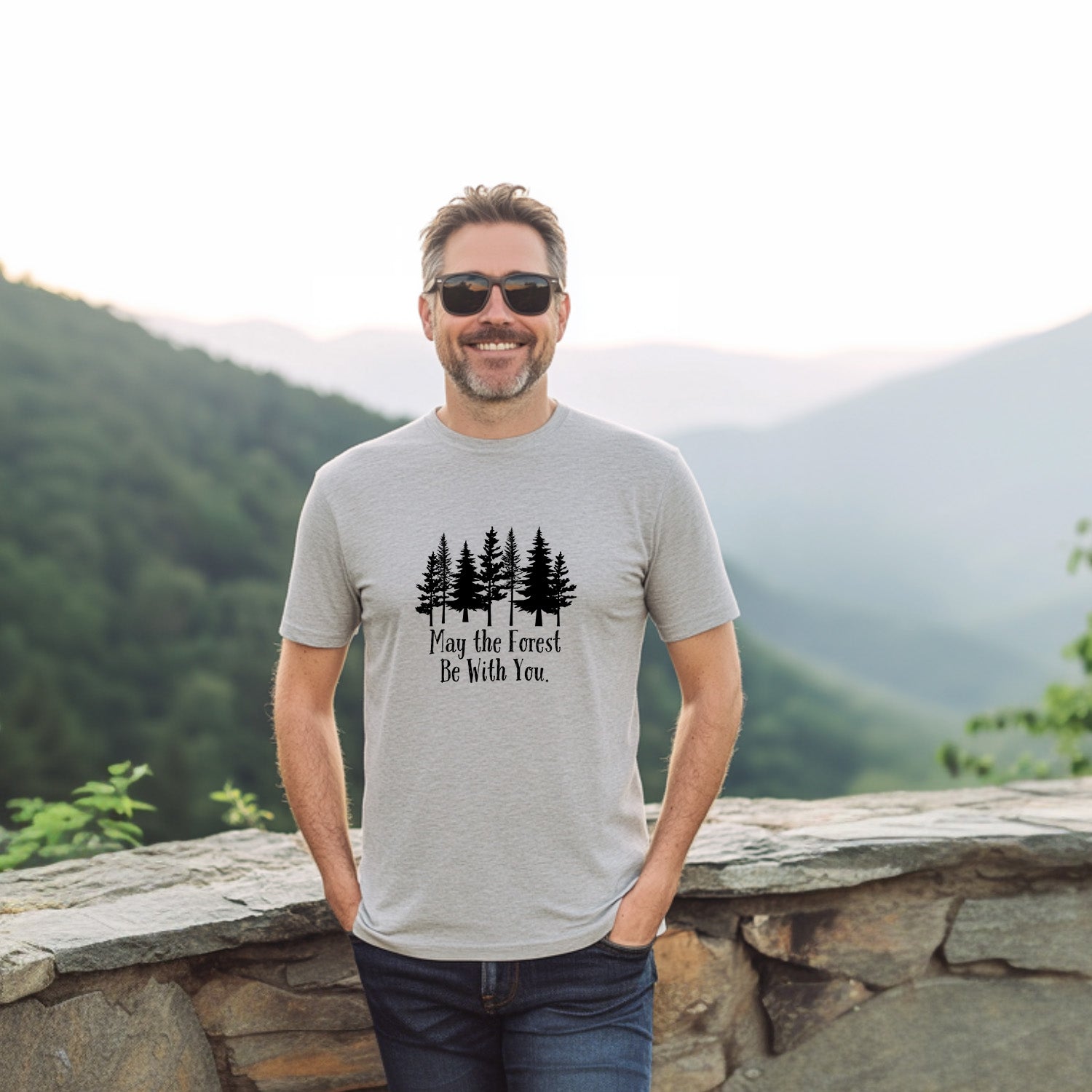 adult, handmade, man, mens, guy, dude, apparel, loose, relax, relaxed, comfy, casual, unisex, gift, gifts, tshirt, men, him, soft, screenprinted, screen, printed, fashion, birthday, affordable, boho, daywear, forest graphic t-shirt, may the forest be with you shirt, men's hiking tee, eco t-shirt, nature lover tee, funny graphic tee, sustainable shirt, gift for dad, outdoorsy shirt, trail tee, camping shirt, father's day gift, retail-ready shirt, unisex forest tee