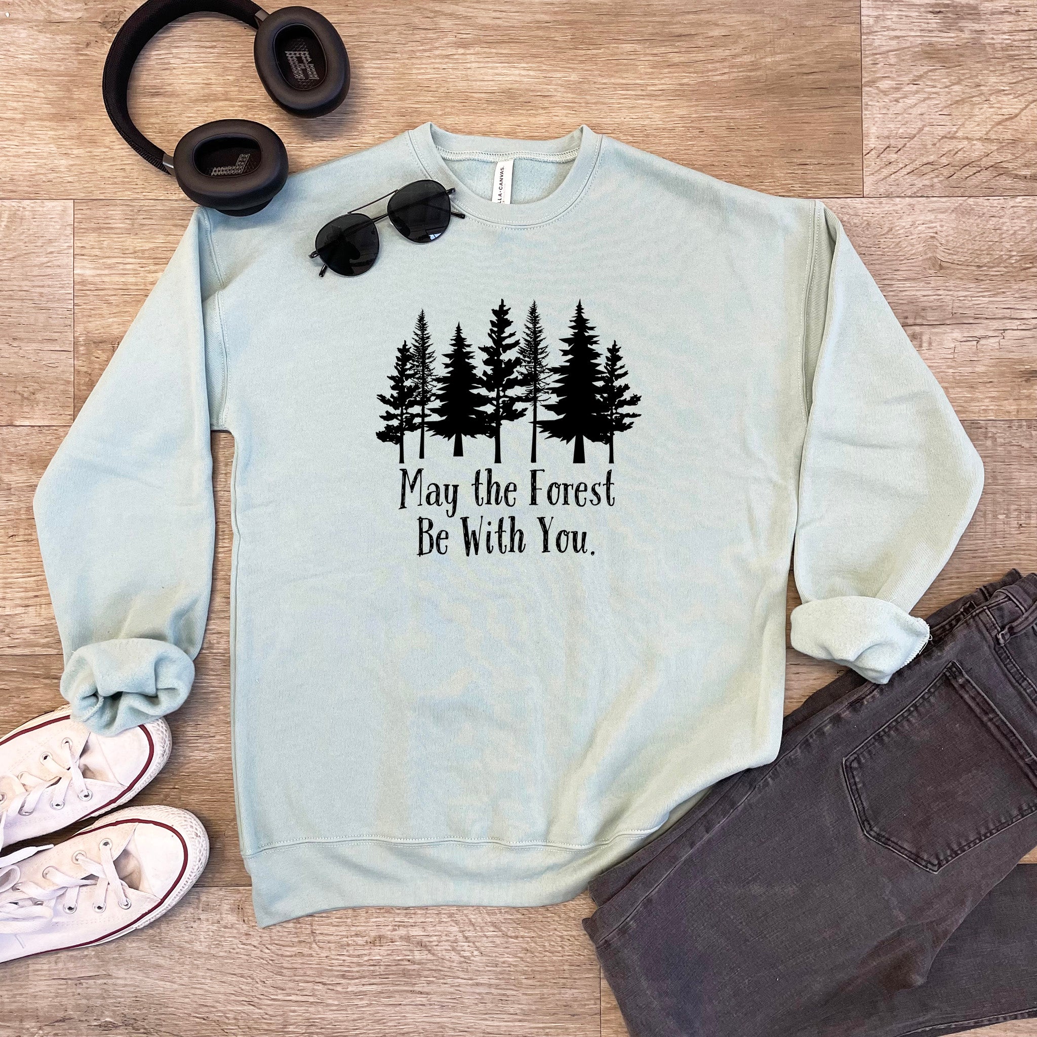 Keywords: sweater, pullover, sweatshirt, tshirt, adult, apparel, mens, handmade, dude, loose, relax, relaxed, fall, autumn, comfy, casual, unisex, lighthearted, humor, humorous, joke, fun, happy, screenprinted, screen, printed, tops, gift, everyday, wear, men, soft, graphic, funny, birthday, dad, fall, spring, comfortable, fleece, may the forest be with you sweatshirt, nature fleece, forest pun crewneck, outdoor pullover, hiker sweatshirt, cozy forest top, gift for camper, warm nature lover gift, casual hiking fleece, gift shop sweatshirt, sustainable sweatshirt, eco apparel