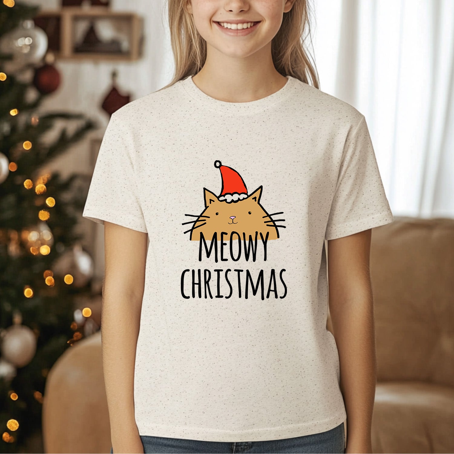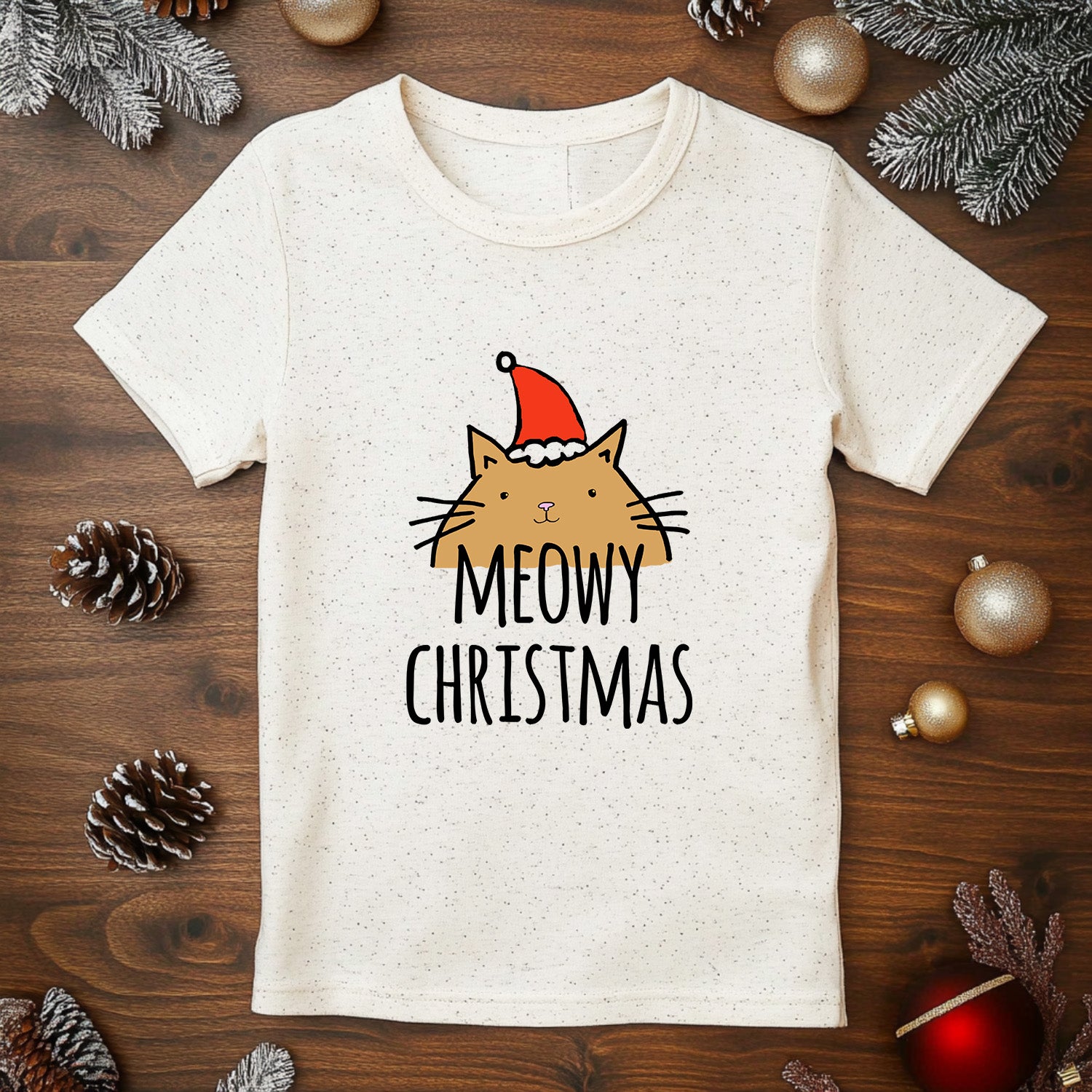 meowy christmas kids shirt, cat holiday t-shirt for kids, santa cat christmas tee, oatmeal festive children’s christmas clothing, boutique holiday apparel for kids, funny christmas cat shirt, novelty santa hat cat tee, festive holiday shirt for children, quirky holiday humor kids outfit, christmas party kids tee, cat lover children’s clothing, stocking stuffer holiday kids apparel, boutique christmas kids shirt, cozy festive christmas cat design, unique holiday kids fashion shirt