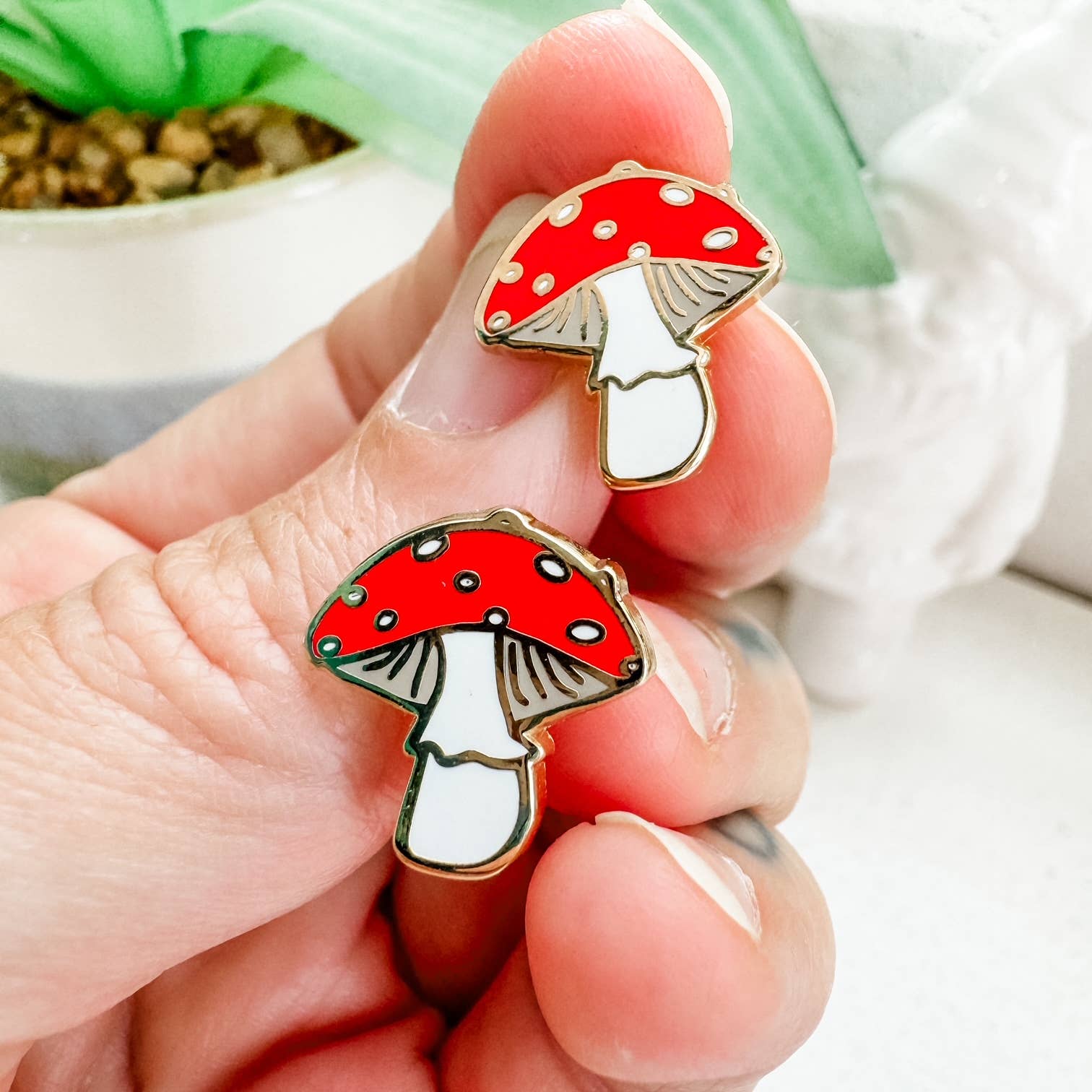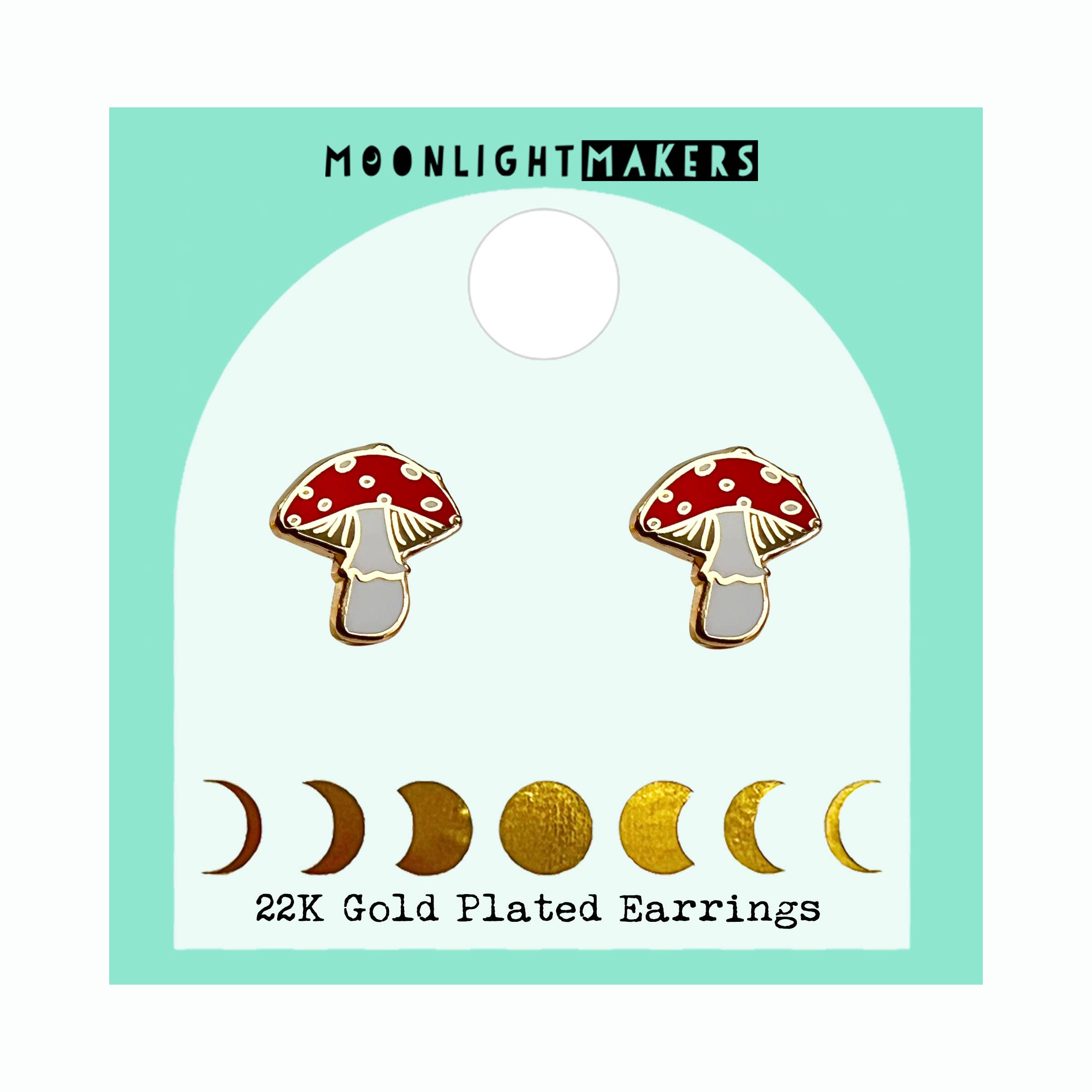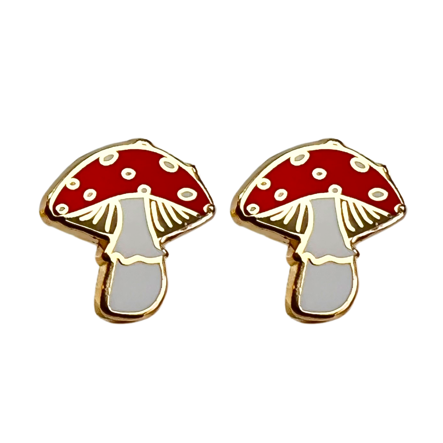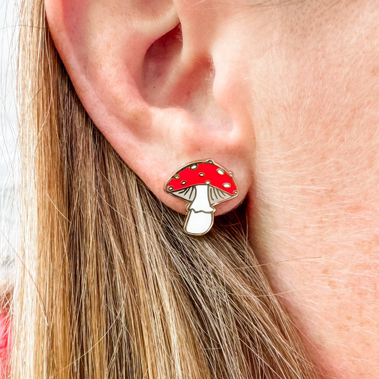 cute earrings, earring studs, 22k gold earrings, hypoallergenic earrings, fun earrings, quirky earrings, gift for her, birthday gift, christmas, mother's day, cute studs, cute jewelry, 22k plated earrings, enamel earrings, enamel earring studs, mushroom gift, mushroom earrings, mushroom accessories, fungi, mushroom lover, whimsical earrings, novelty earrings, boho earrings, hippie earrings, cute boho accessories, kids earrings