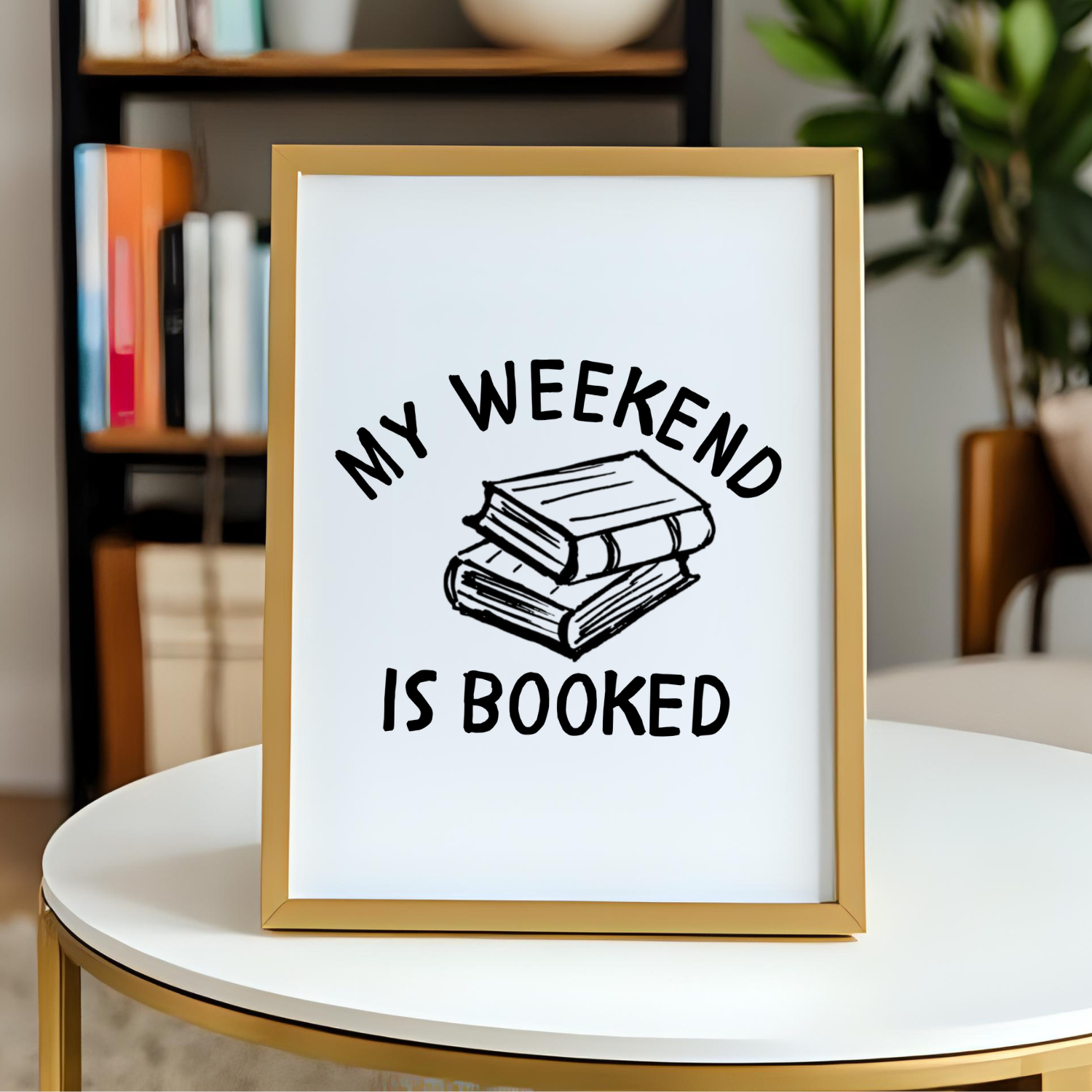 my weekend is booked wall art, book lover art print, stack of books illustration, reading nook wall decor, library or study art, bookworm wall print, literary themed artwork, book club gift, gift shop reading wall art, gift for book lover, gift for reader, reading obsessed, book shop merch, book accessories, reading apparel, birthday gift, book club, bookish, booktok, romantasy lover, romantasy decor, reading accessories