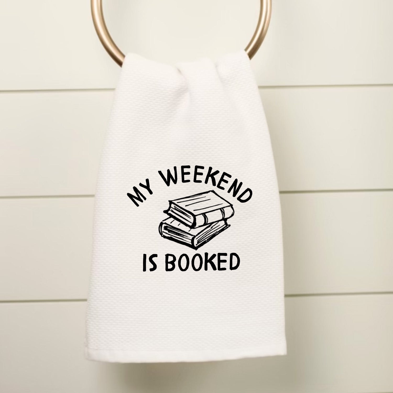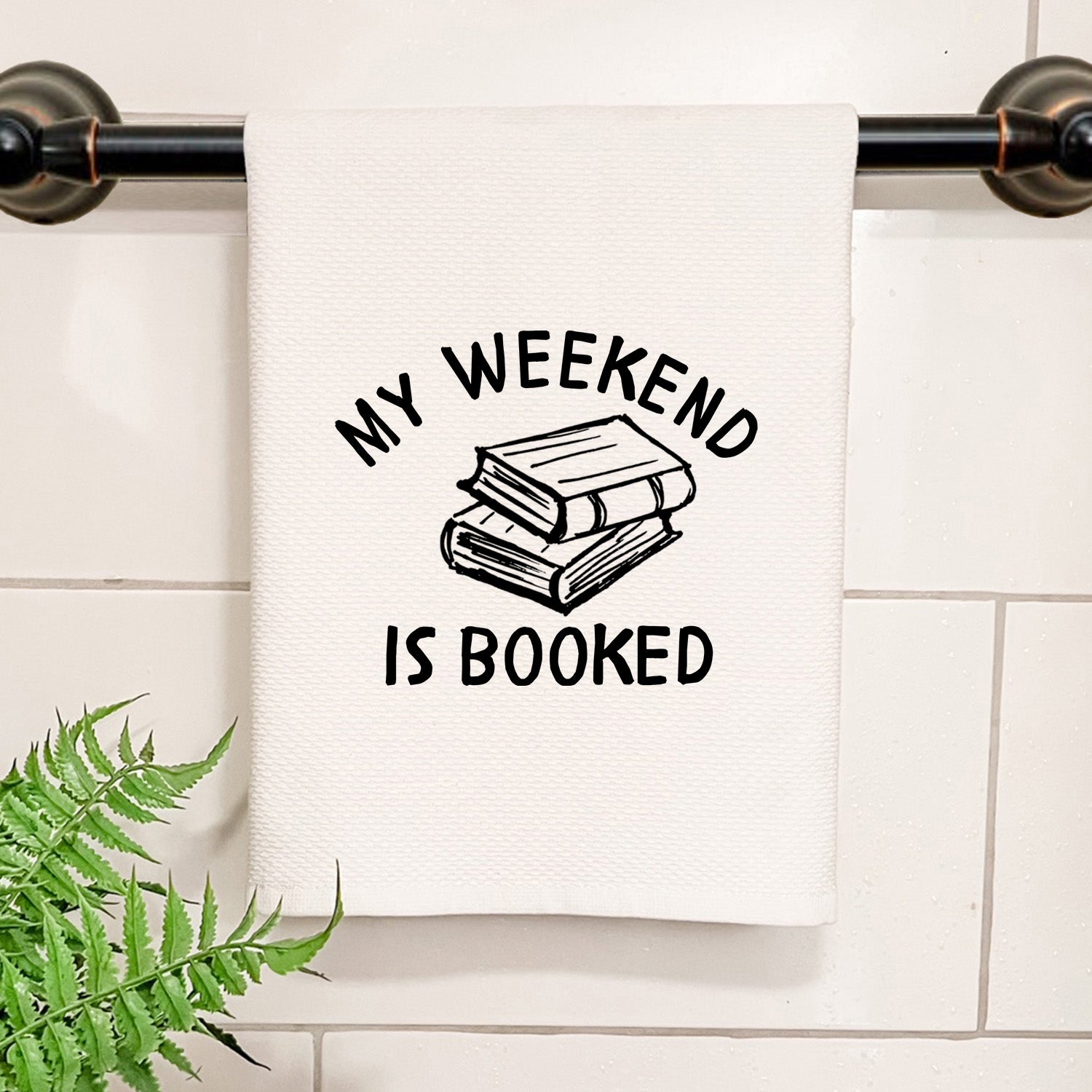 funny bathroom towel, my weekend is booked hand towel, book lover waffle weave towel, reading pun bathroom towel, library-themed kitchen decor, cute book club gift, literary hand towel, bookworm housewarming gift, funny book kitchen towel, gift shop book towel, gift for book lover, gift for reader, reading obsessed, book shop merch, book accessories, reading decor, birthday gift, book club, bookish, booktok, romantasy lover, romantasy decor, gift for reader, gift for her, gift for bestie, mother's day