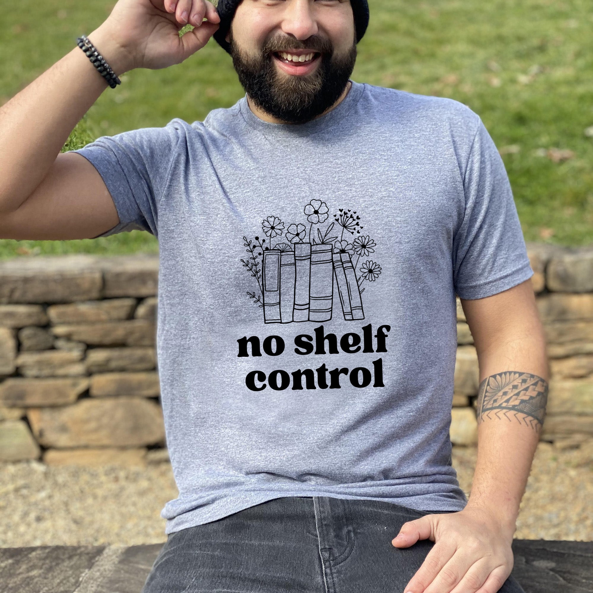 adult, handmade, man, mens, guy, dude, apparel, loose, relax, relaxed, comfy, casual, unisex, lighthearted, humor, humorous, joke, fun, happy, tops, gift, gifts, tshirt, men, him, soft, screenprinted, screen, printed, no shelf control men’s t-shirt, book lover graphic tee, funny book pun shirt, floral book stack design, casual reading apparel, library-themed shirt, gift for bookworm, book club tee, gift shop book shirt, gift for book lover, gift for reader, reading obsessed, book shop merch, book accessories, reading apparel, birthday gift, book club, bookish, booktok, romantasy lover, romantasy apparel, cute book shirts