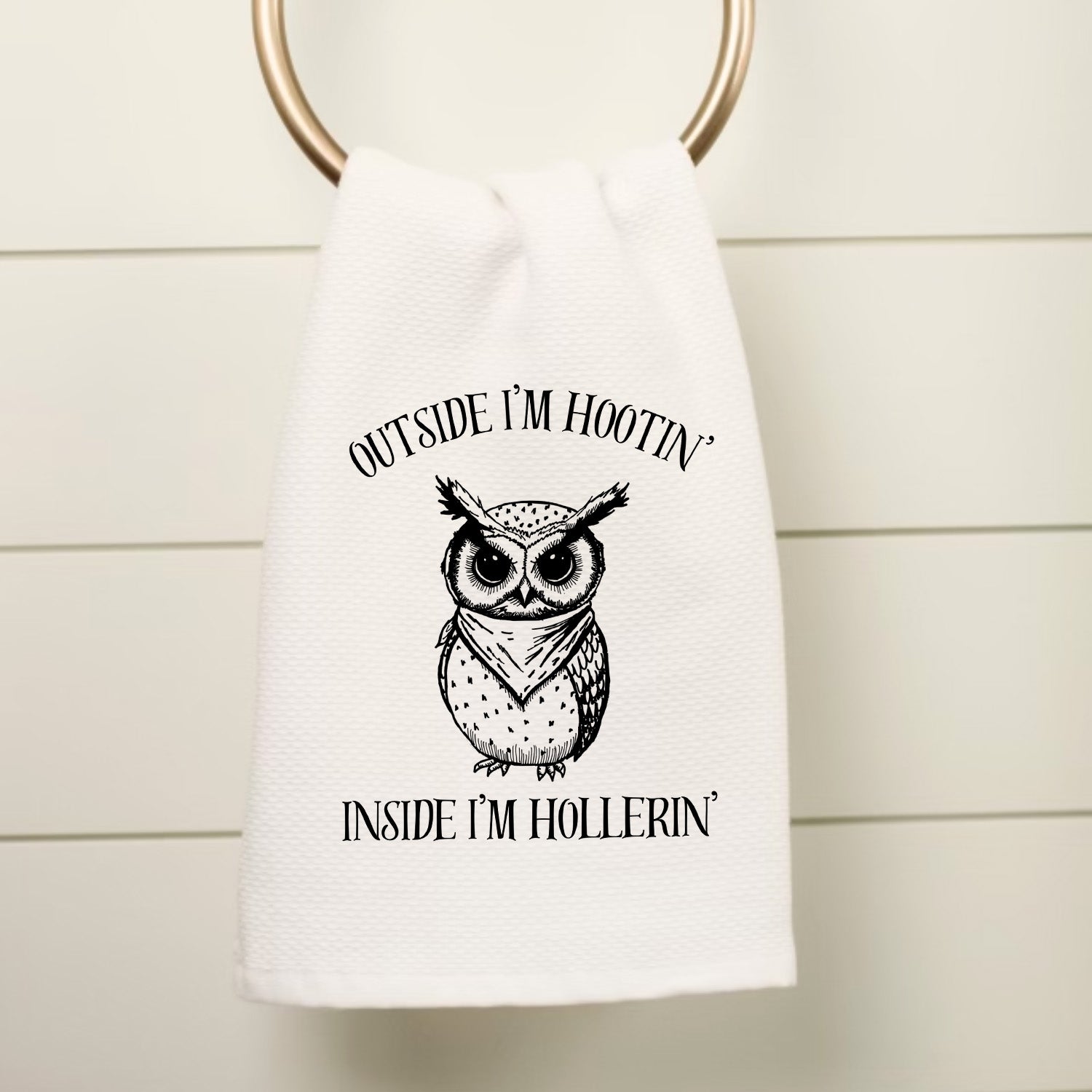 Outside Hootin, Inside Hollerin - Hand Towels (Waffle)