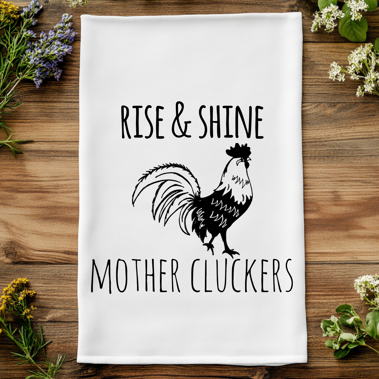 Rise & Shine Mother Cluckers - Dish Towels - White or Gray