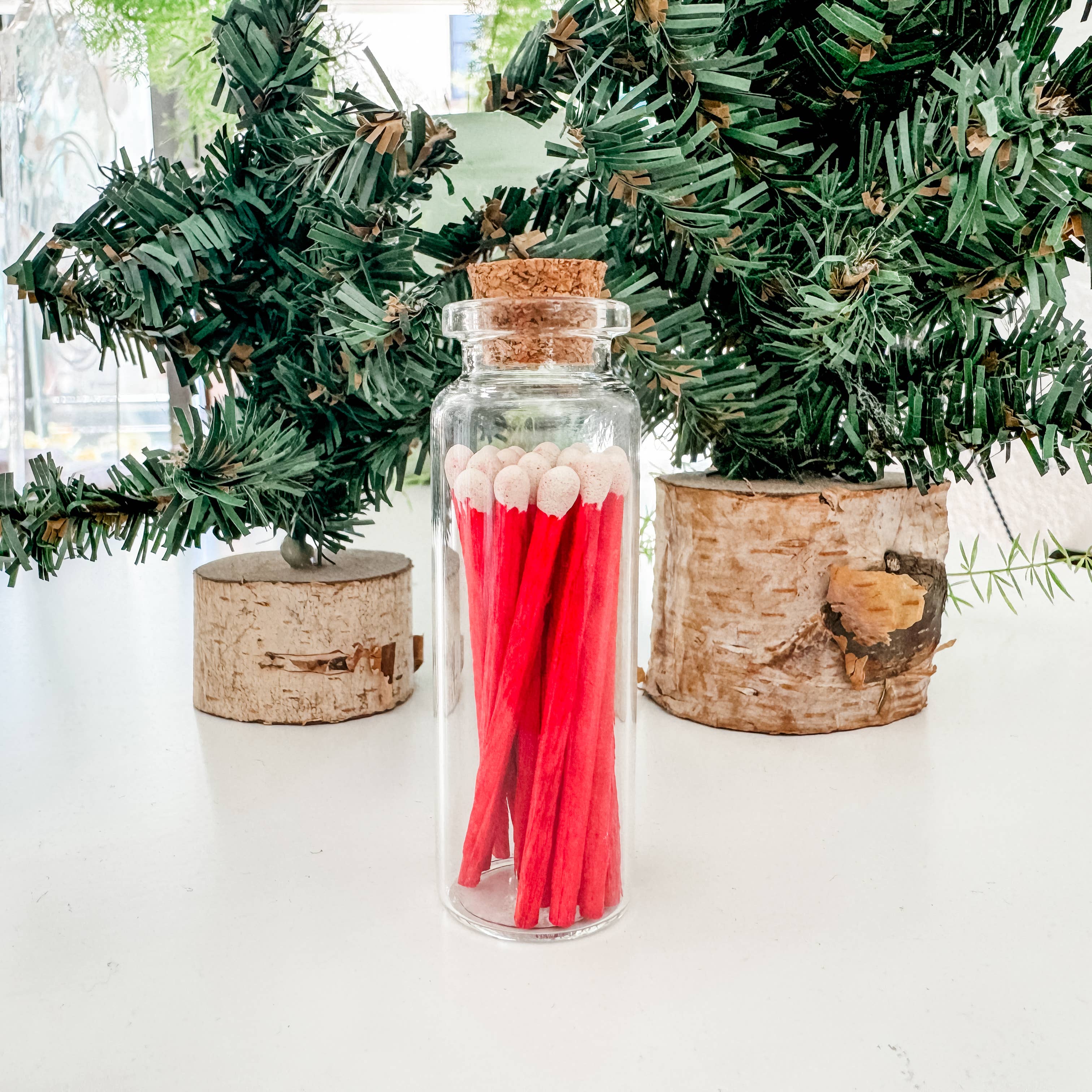 Embrace the magic of the holiday with these limited edition red safety matches, perfectly packaged in sleek glass vials. Ideal for curating a holiday aesthetic in your shop, these matches are a must-have for the winter season. They pair perfectly with candles, apothecary items, and other holiday decor.