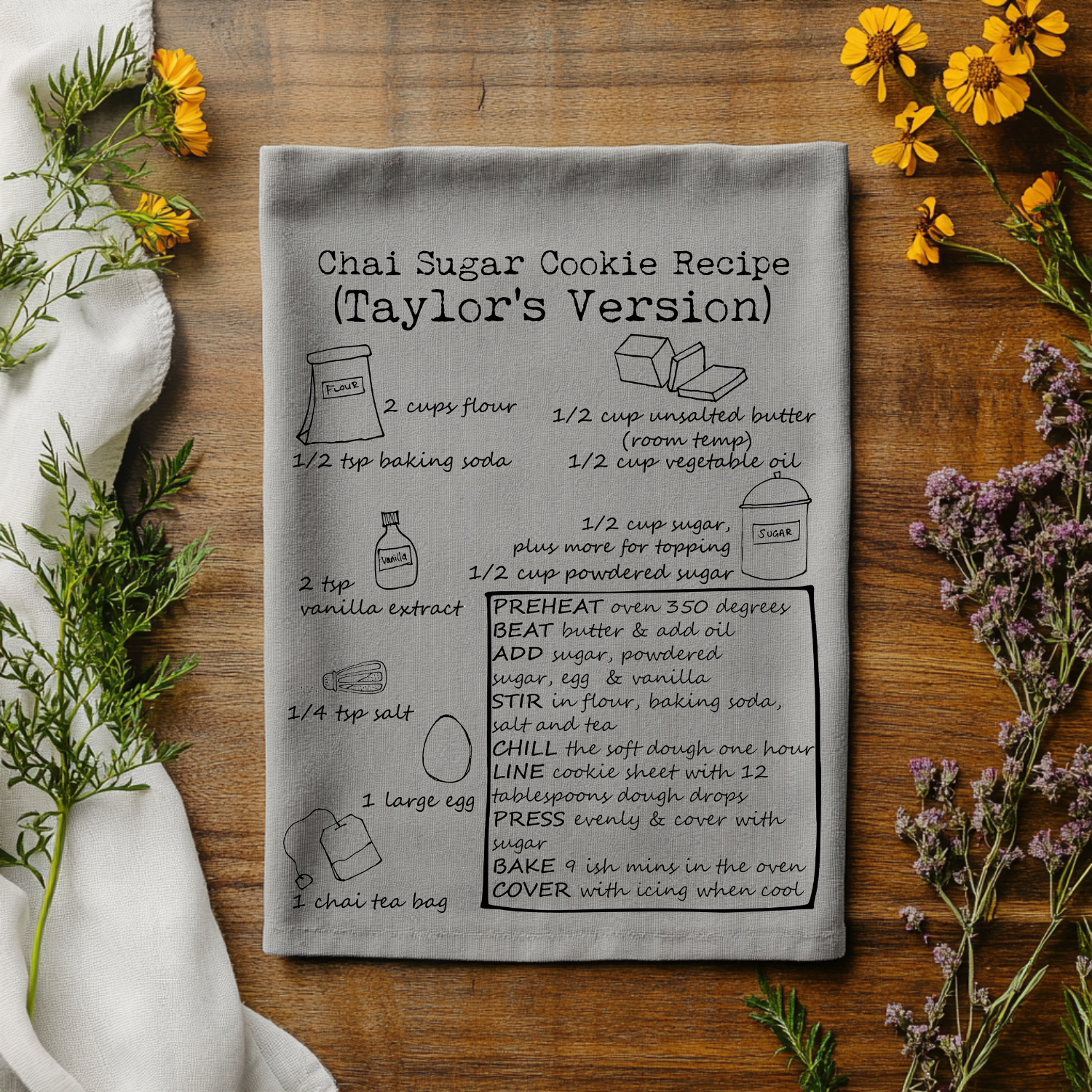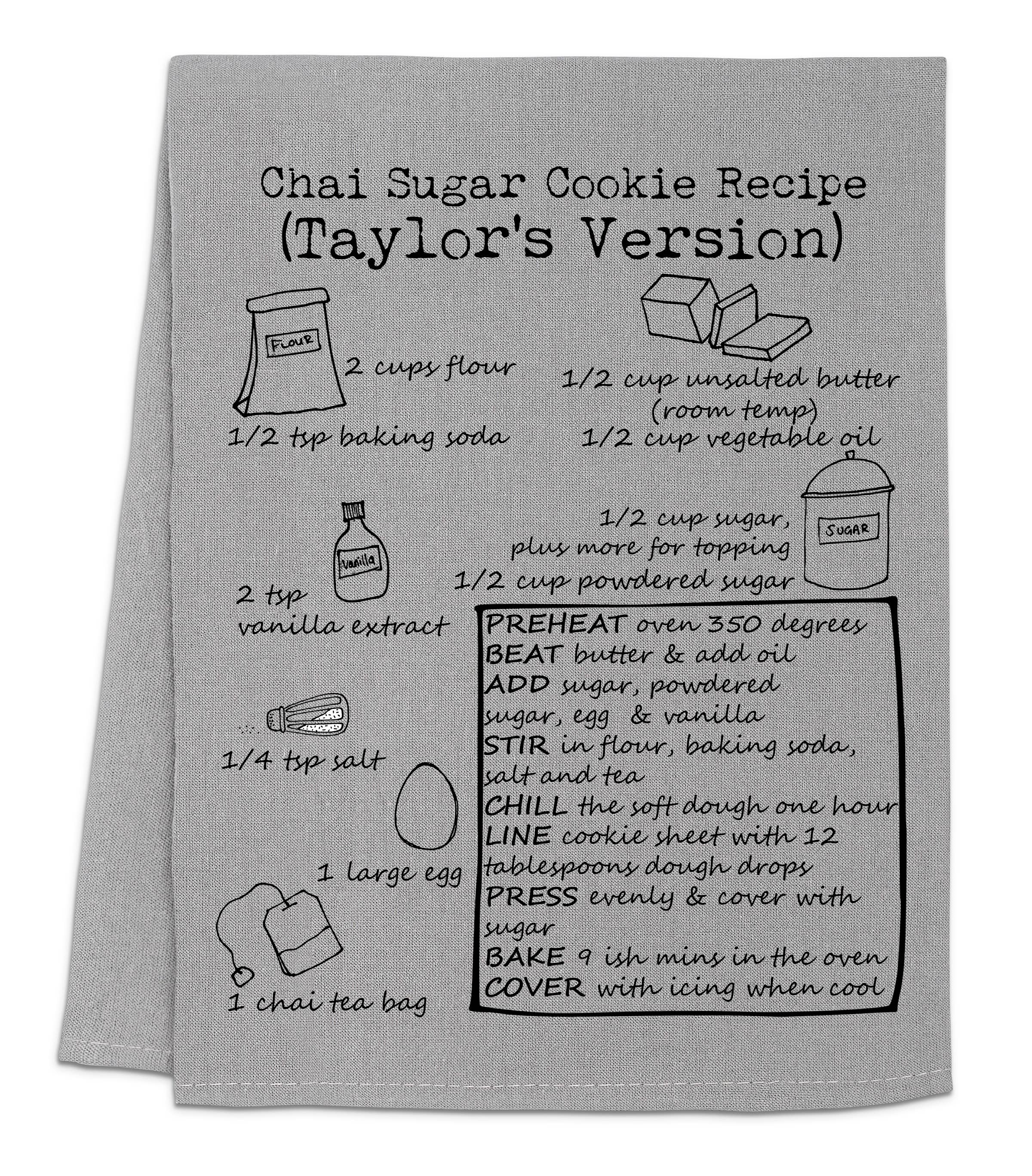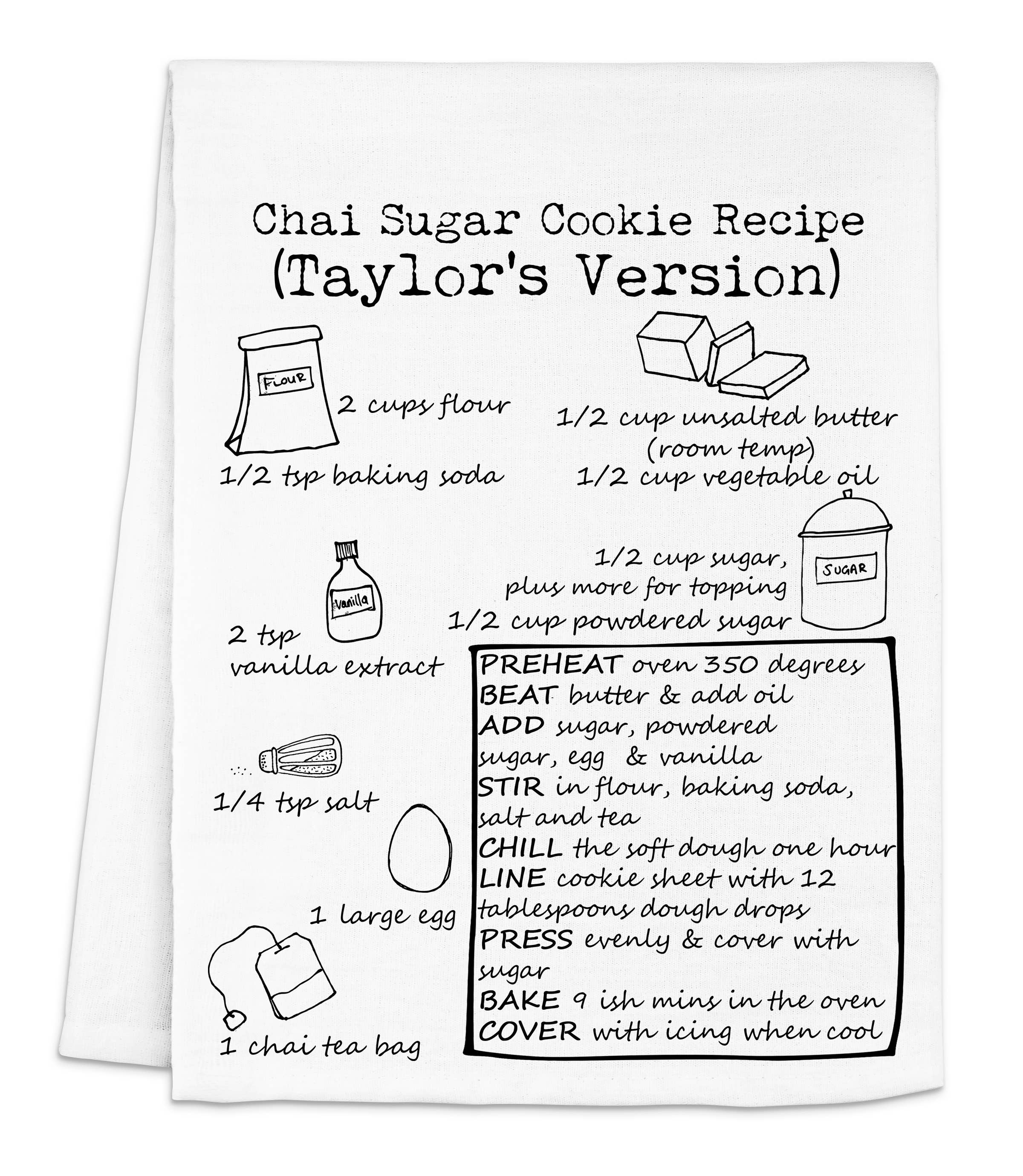 lighthearted, humor, joke, fun, laughter, idea, bar, dishes, gifts, him, her, ideas, host, hosting, hostess, handtowel, humorous, laugh, uplifting, usa, american, made, décor, cook, chef, recipe kitchen towels, taylor swift decor, taylor swift gift, chai sugar cookies, taylor's version, cute kitchen decor, kitchen gifts, taylor swift accessories, chai, chai latte, cookie recipe, cookie kitchen towel, baker, bakery